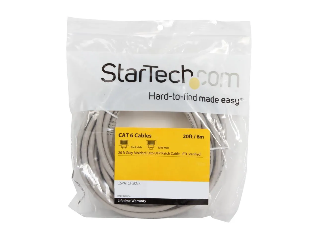 StarTech.com C6PATCH20GR 20 ft. Cat 6 Gray Cat.6 Patch Cable