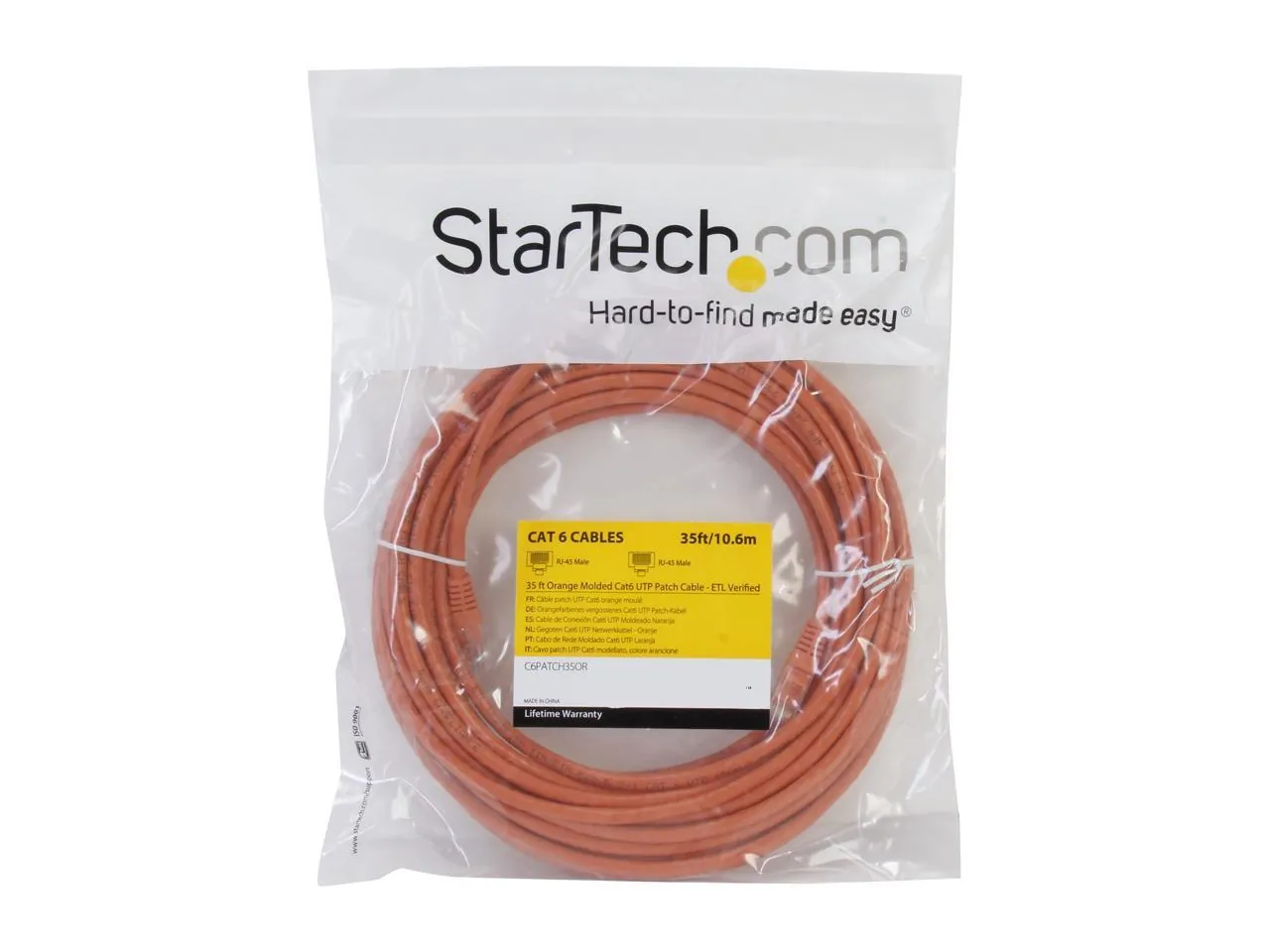The StarTech.com 35 ft. Cat 6 Orange Molded RJ45 UTP Gigabit Patch Cable is designed for high-performance data transmission. This durable cable is perfect for connecting your network devices, ensuring speedy connections and reliability.