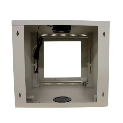 The server rack offers 10U of storage space and is designed to accommodate standard 19in (wide) rack equipment. To ensure a cool operating environment for your equipment, the server rack includes a 5in roof-mounted fan (85 CFM) and vented side panels - not only helping to keep temperatures down, but keep dust out of the rack.