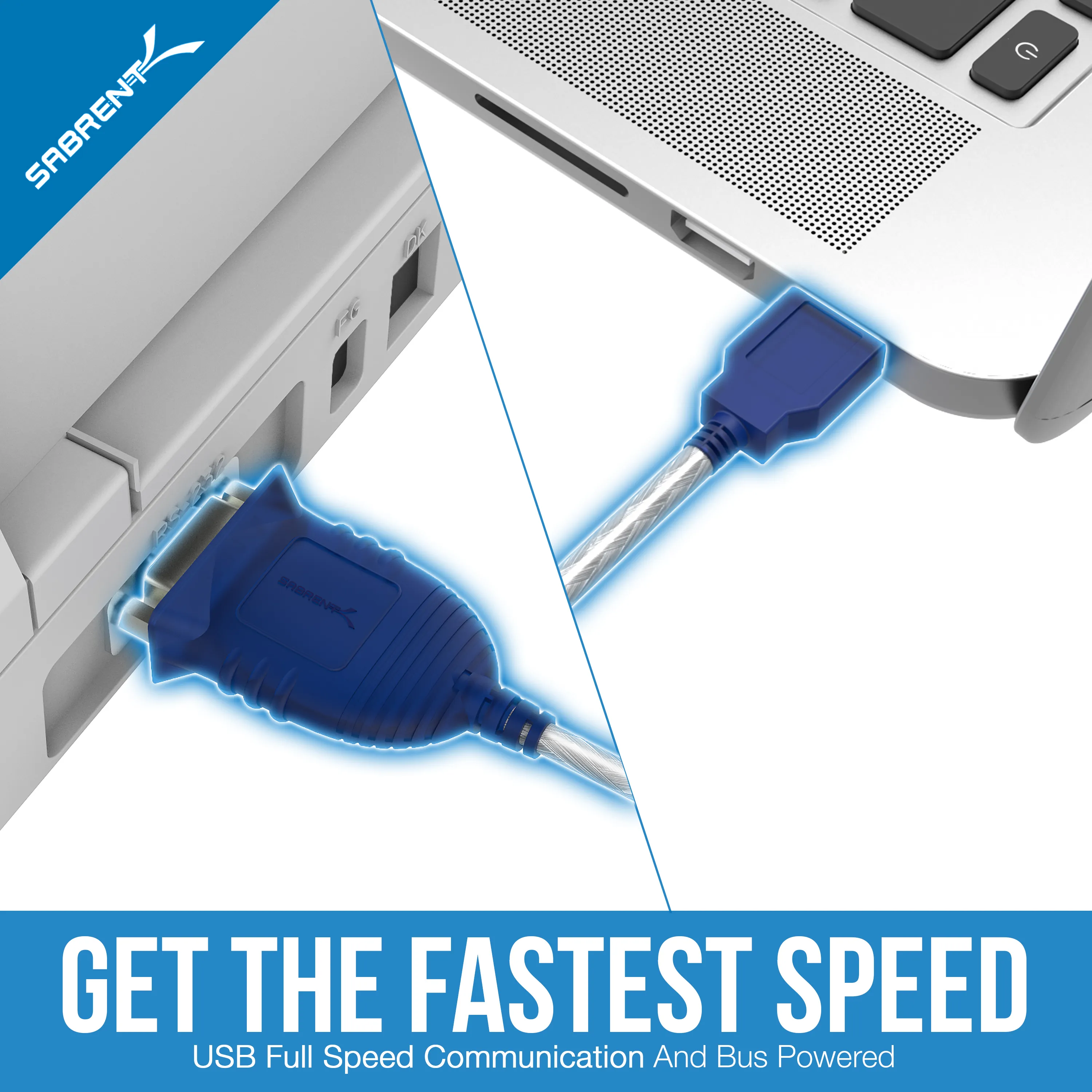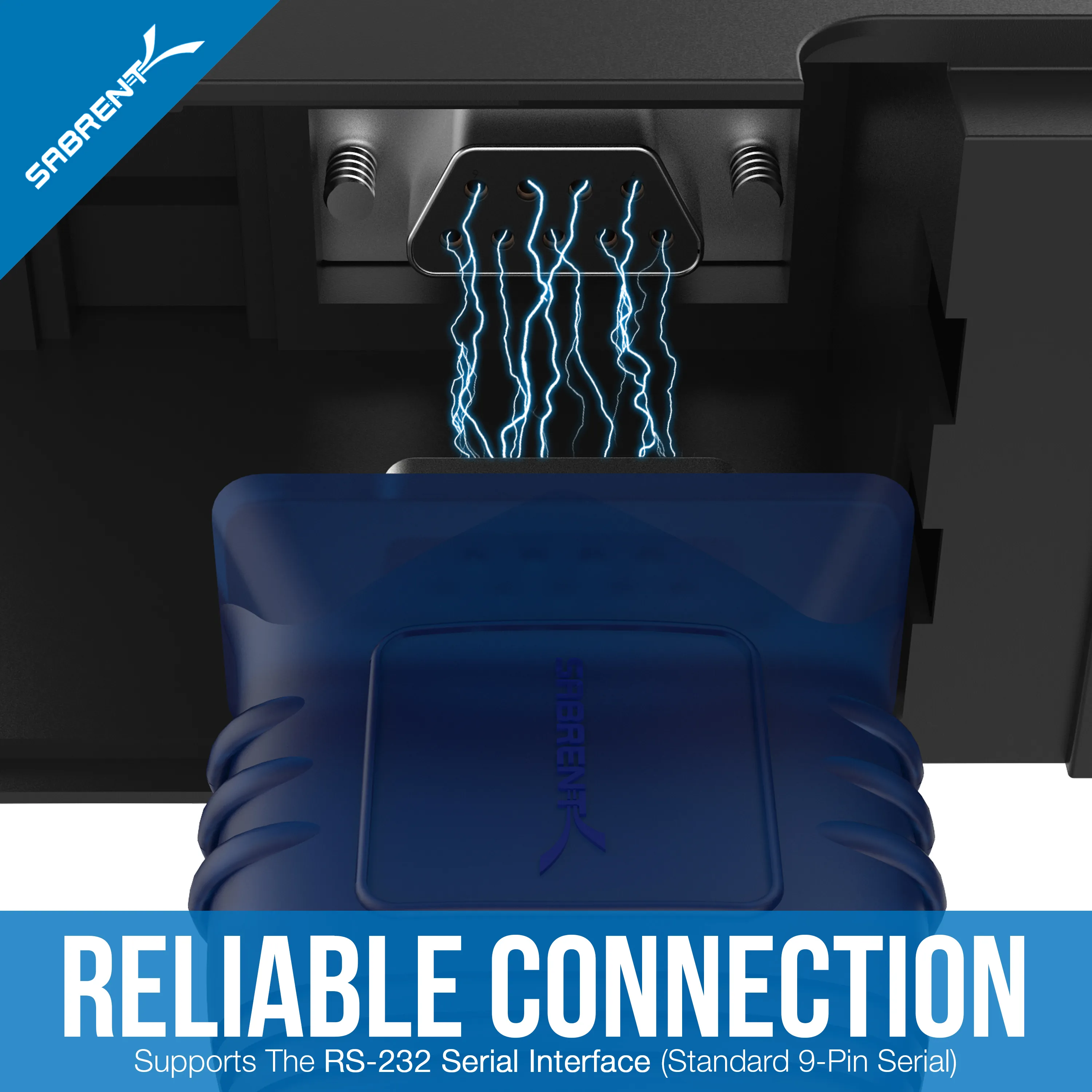 The Sabrent USB 2.0 to Serial DB-9 Adapter Cable allows you to connect RS-232 devices to your computer via a USB port. It features a Prolific chipset for reliable connectivity and easy installation.
