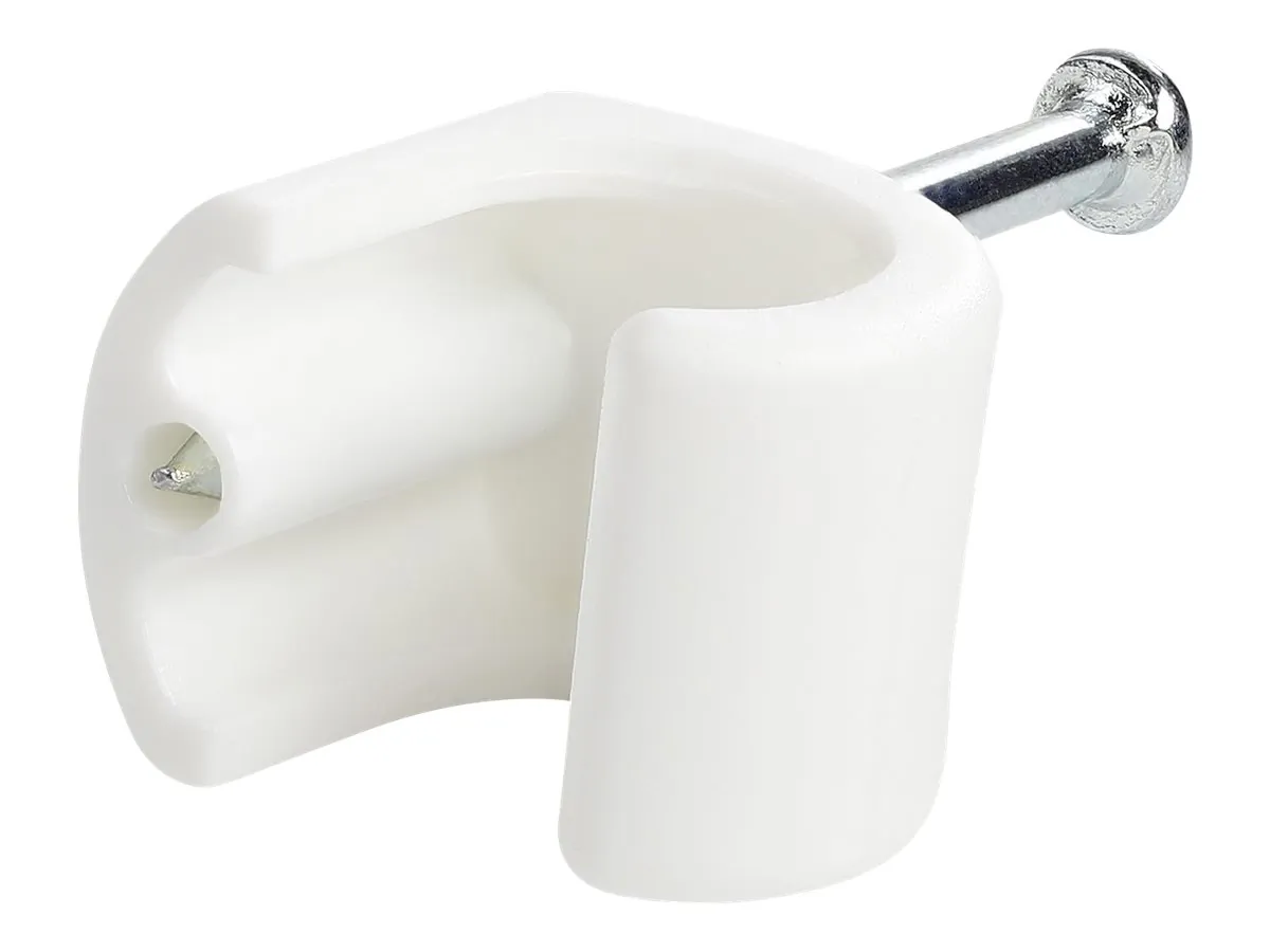 These single nail cable clips secure cables to the wall to route and organize them. 100 White cable clips are included, ensuring you'll have plenty on hand.