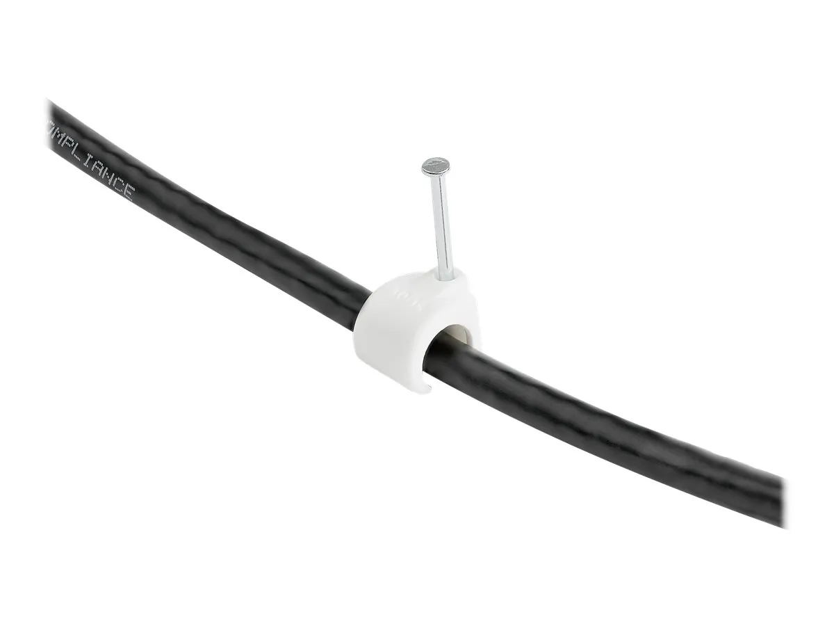 Made of durable PE material and featuring a galvanized steel nail, these cable clips ensure a strong bearing capacity and are corrosion resistance and suitable for securing cable bundles to wood, drywall and masonry.