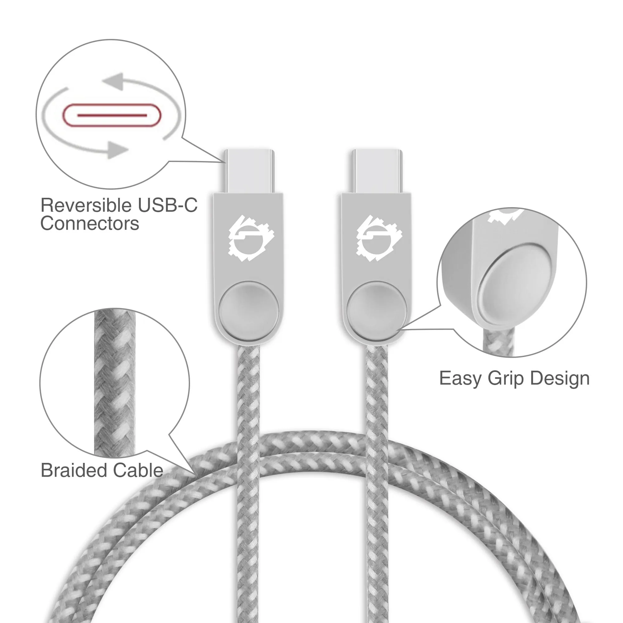ZINC ALLOY USB-C TO USB-C CHARGING & SYNC WOVEN BRAIDED CABLE - 3.3FT, 2-PACK, U