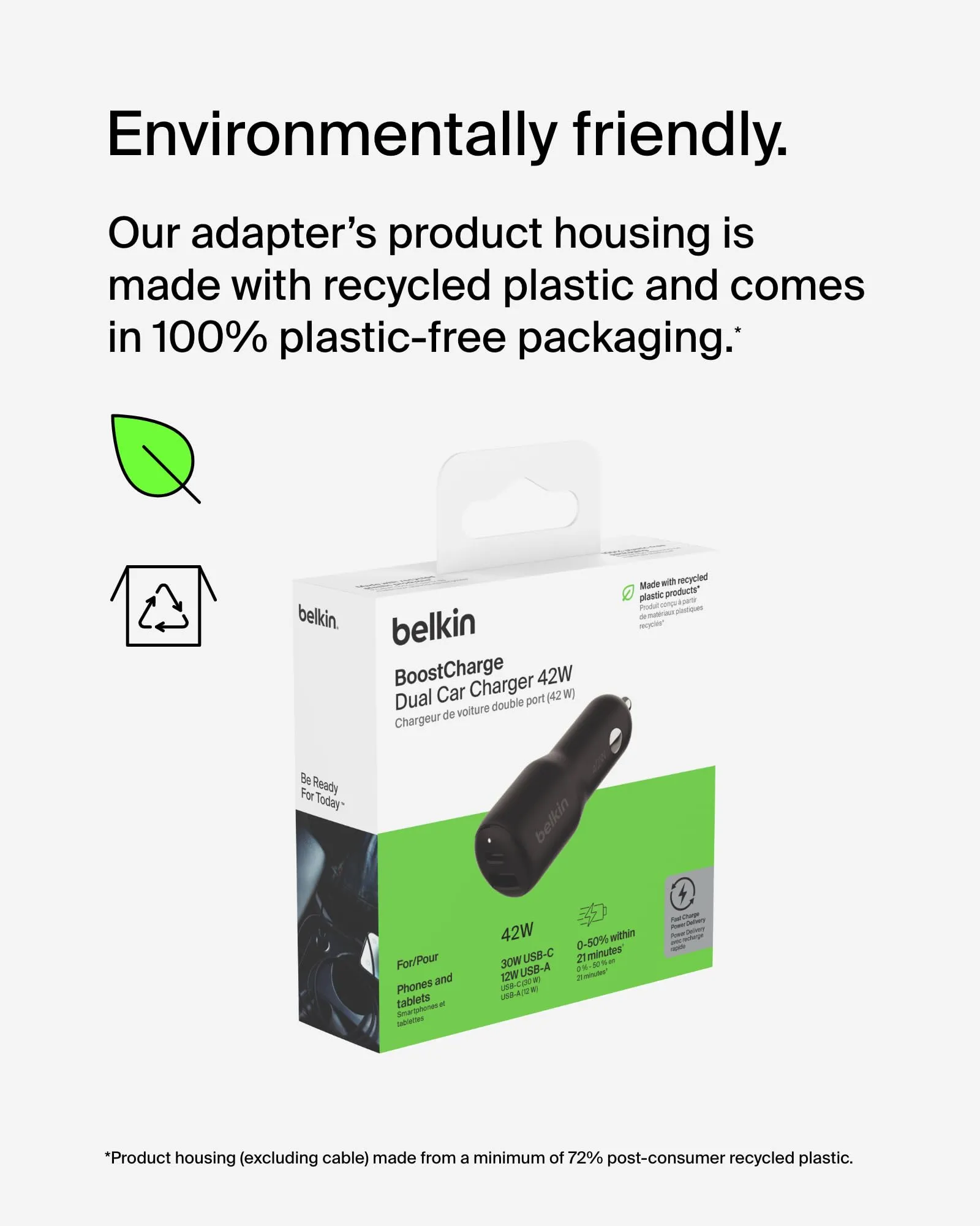 • Dual charging ports: USB-C and USB-A