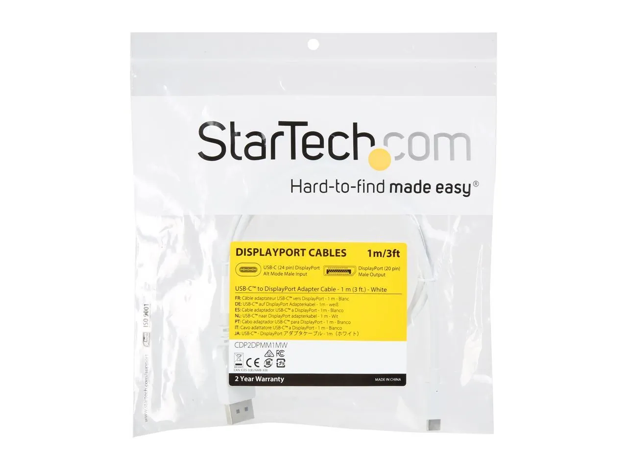 StarTech.com CDP2DPMM1MW 3.3 ft (1 m) USB-C to DisplayPort Cable - USB Type-C to DP Video Adapter Cable - 4K 60Hz - White