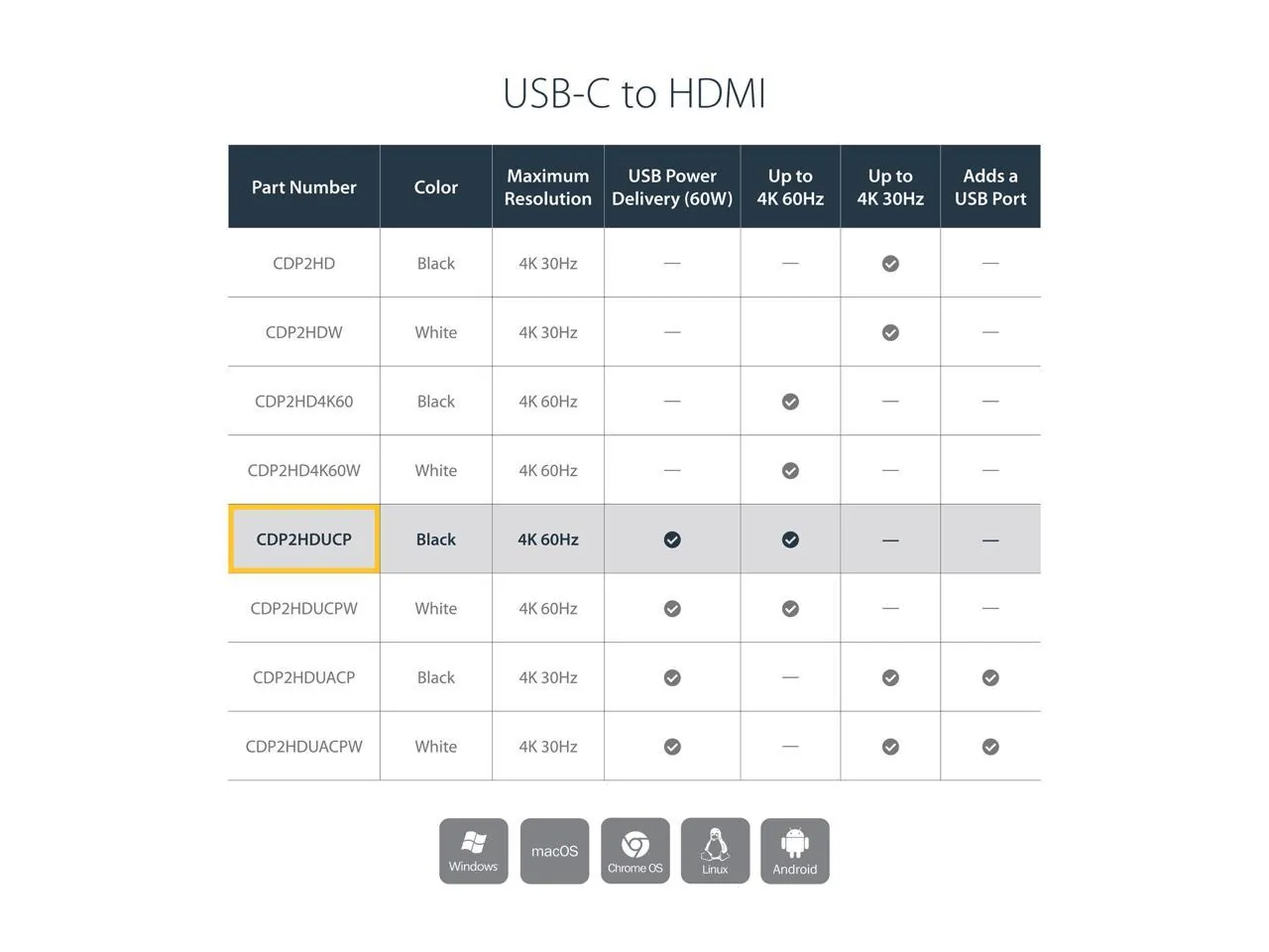 StarTech.com CDP2HDUACP USB-C to HDMI Adapter - 4K 30Hz - Thunderbolt 3 Compatible - with Power Delivery (USB PD) - USB C Adapter Converter