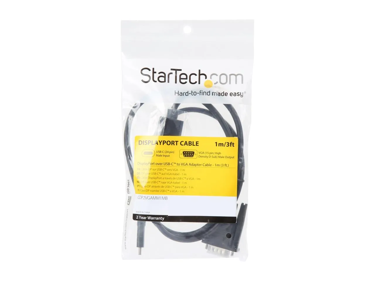 3.3 ft. / 1 m USB C to VGA monitor adapter and cable in one avoids the hassle of a bulky adapters for clutter-free installation- USB-C to VGA cable supports resolutions up to 1920 x 1200 - Black 3.3 foot / 1 meter cable matches your black USBC Ultrabook or laptop - VGA cable features reversible USB C port - VGA cable works with Thunderbolt 3 ports and USB 3.1 Type-C ports that support DP Alt Mode