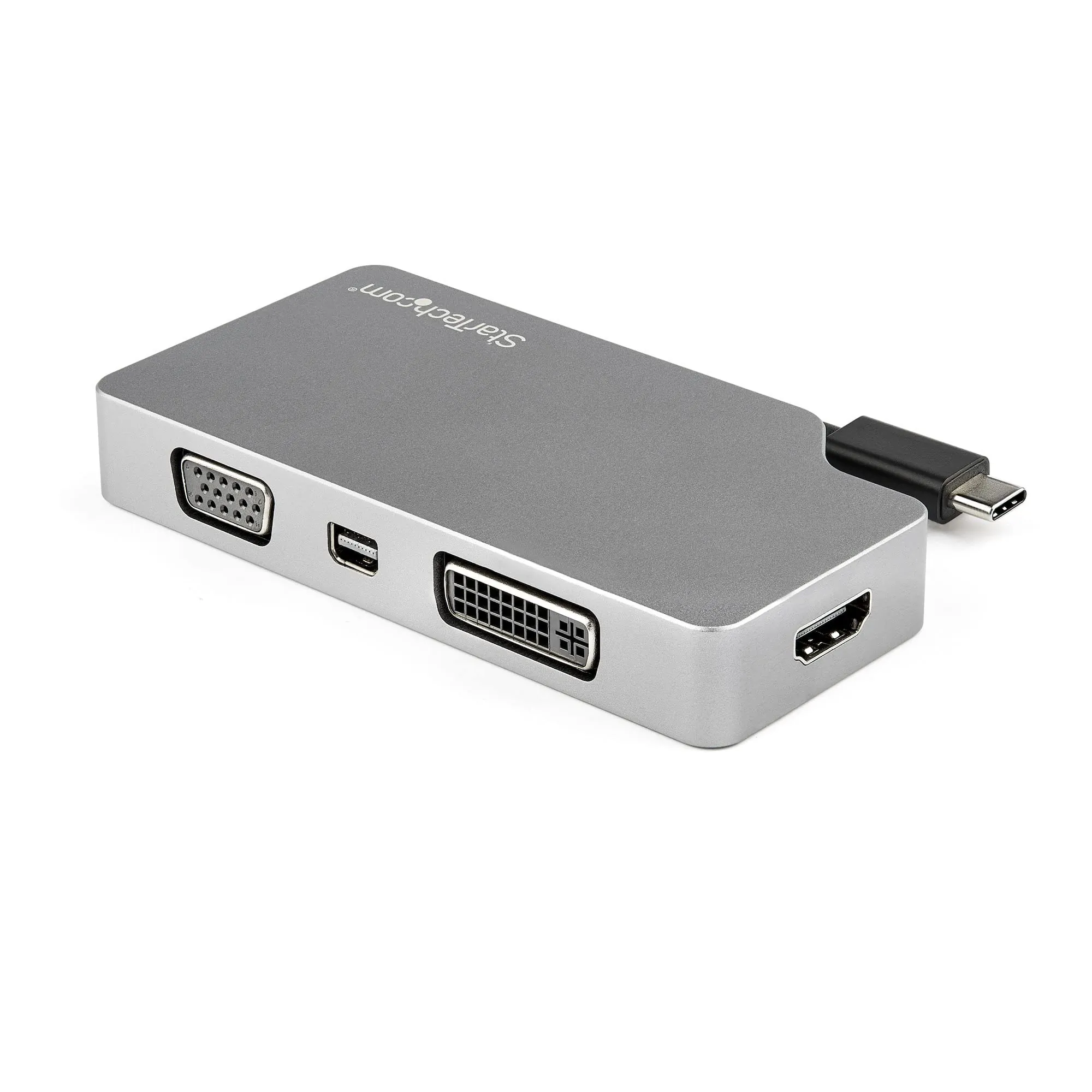 USB-C Multiport Video Adapter - 4-in-1 Travel A/V Adapter - USB Type-C to VGA DVI HDMI or mDP Adapter - 4K 60Hz. USB-C all in one adapter works as USB-C to VGA / DVI / Mini DisplayPort / HDMI adapter - 4K USB-C adapter supports UHD resolutions up to 4K 60Hz - Space gray USB-C adapter matches your MacBook - USB Type-C monitor adapter connects your BYOD laptop to a provided - VGA DVI mDP or HDMI display at work or school - The 4K USB-C adapter works with your Thunderbolt 3 / USBC computer - Multi display adapter for your laptop works to connect a secondary VGA DVI HDMI or Mini DisplayPort monitor