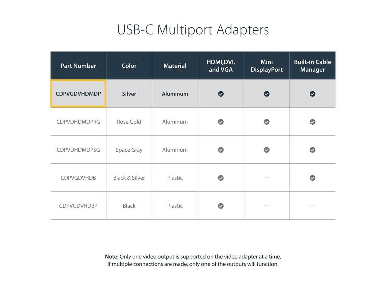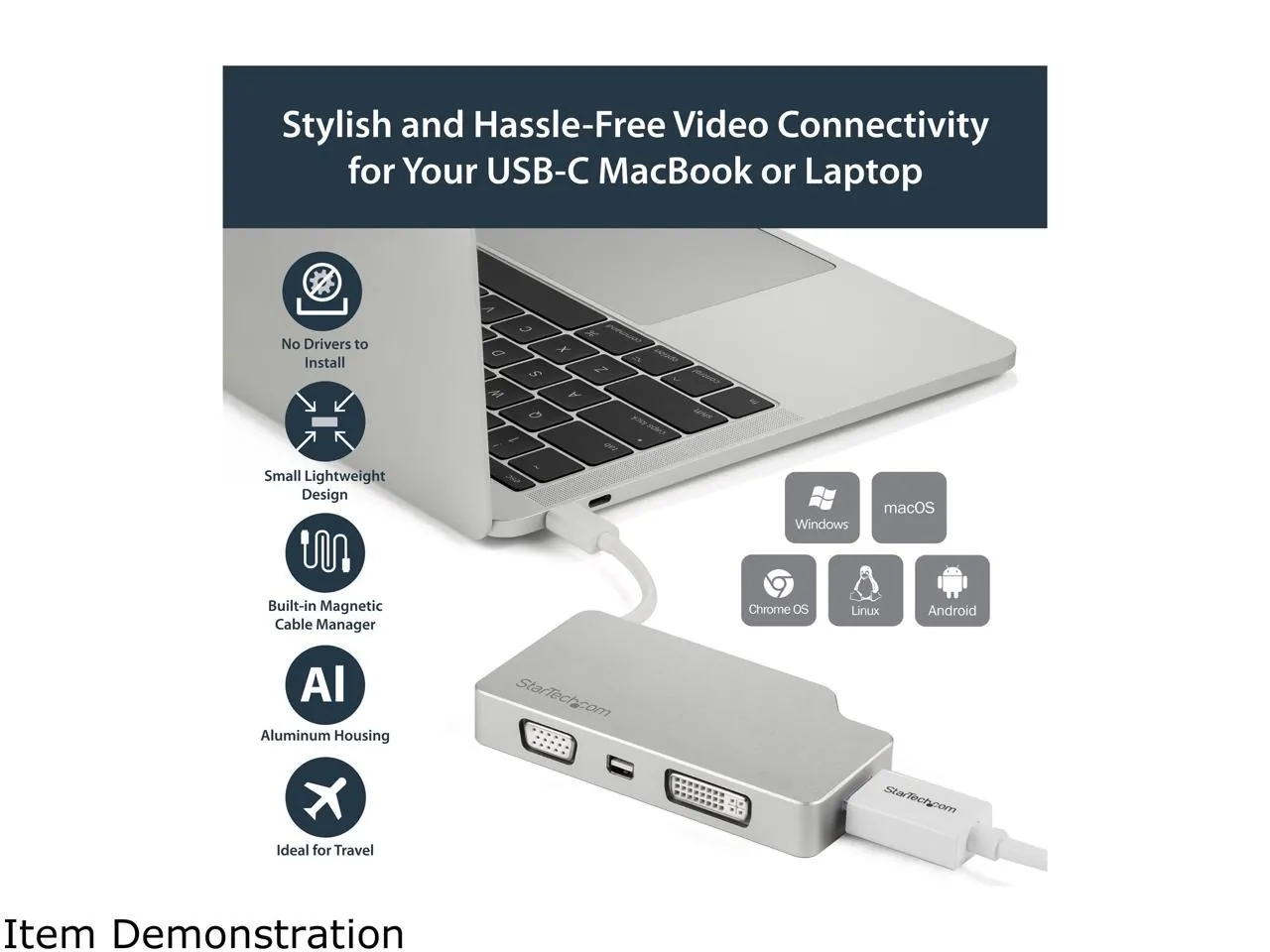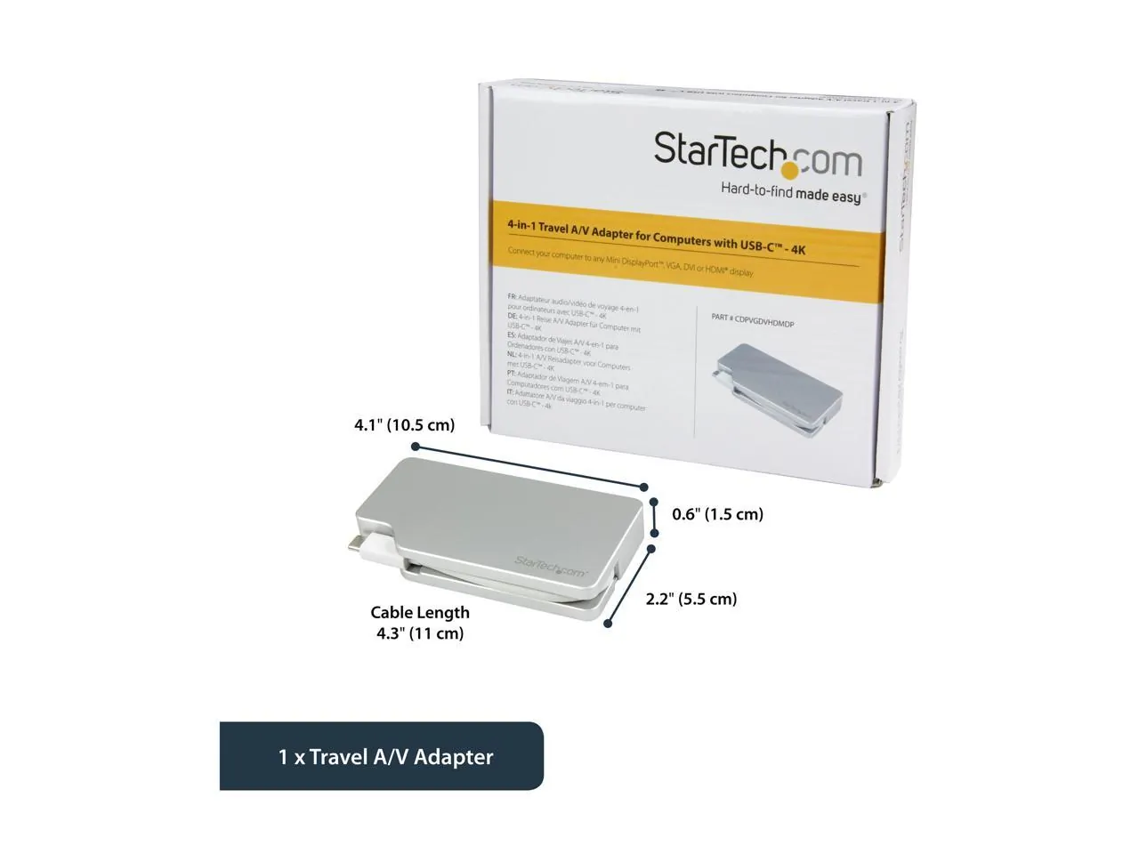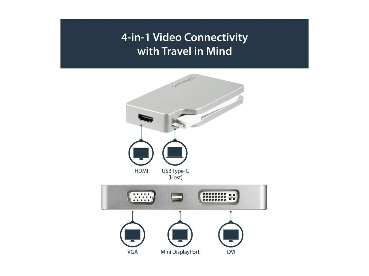 StarTech.com CDPVGDVHDMDP Aluminum Travel A/V Adapter: 4-in-1 USB-C to VGA, DVI, HDMI or mDP - 4K