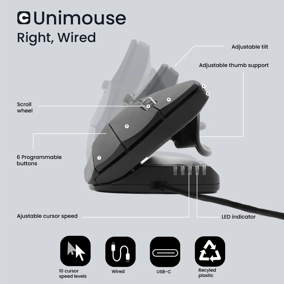 UNIMOUSE Wired Ergonomic Right-Handed Mouse