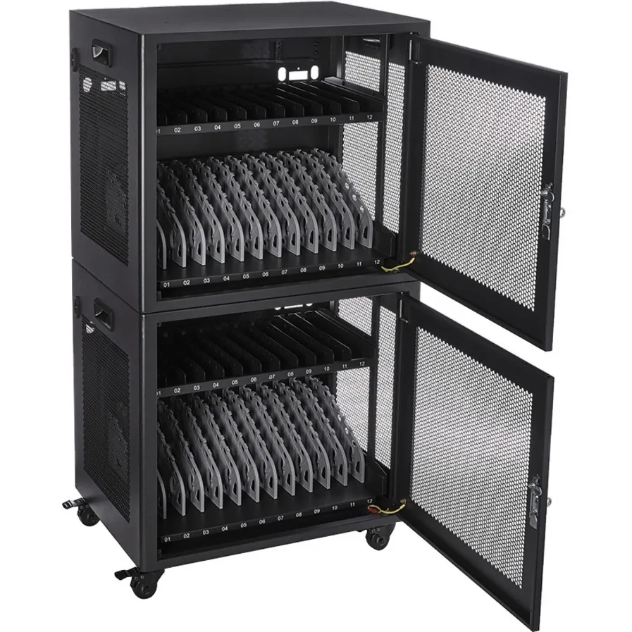 This charge station is designed to securely store and charge up to 12 mobile PCs at once. It features a compact and robust design, making it ideal for use in schools, offices, and kiosks.