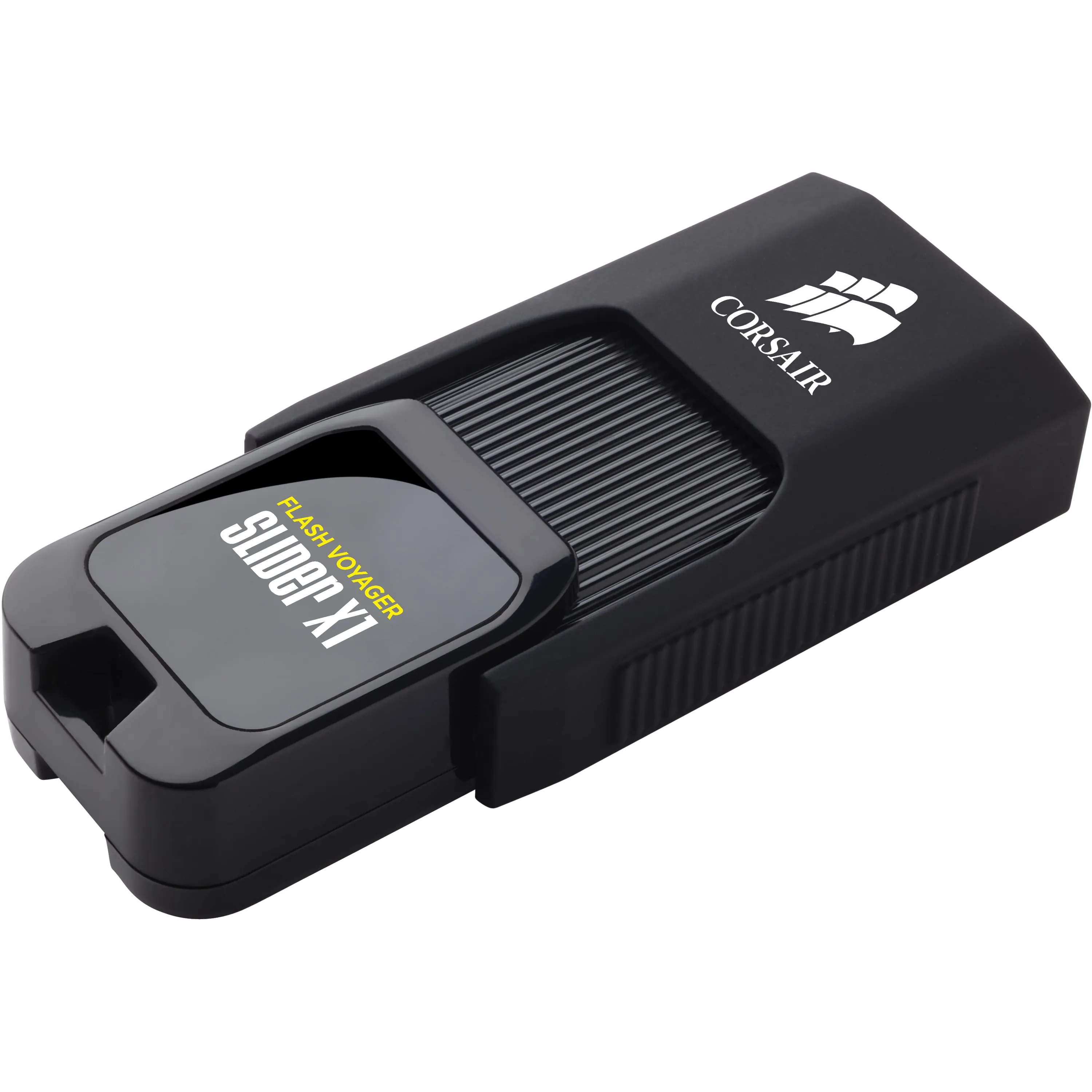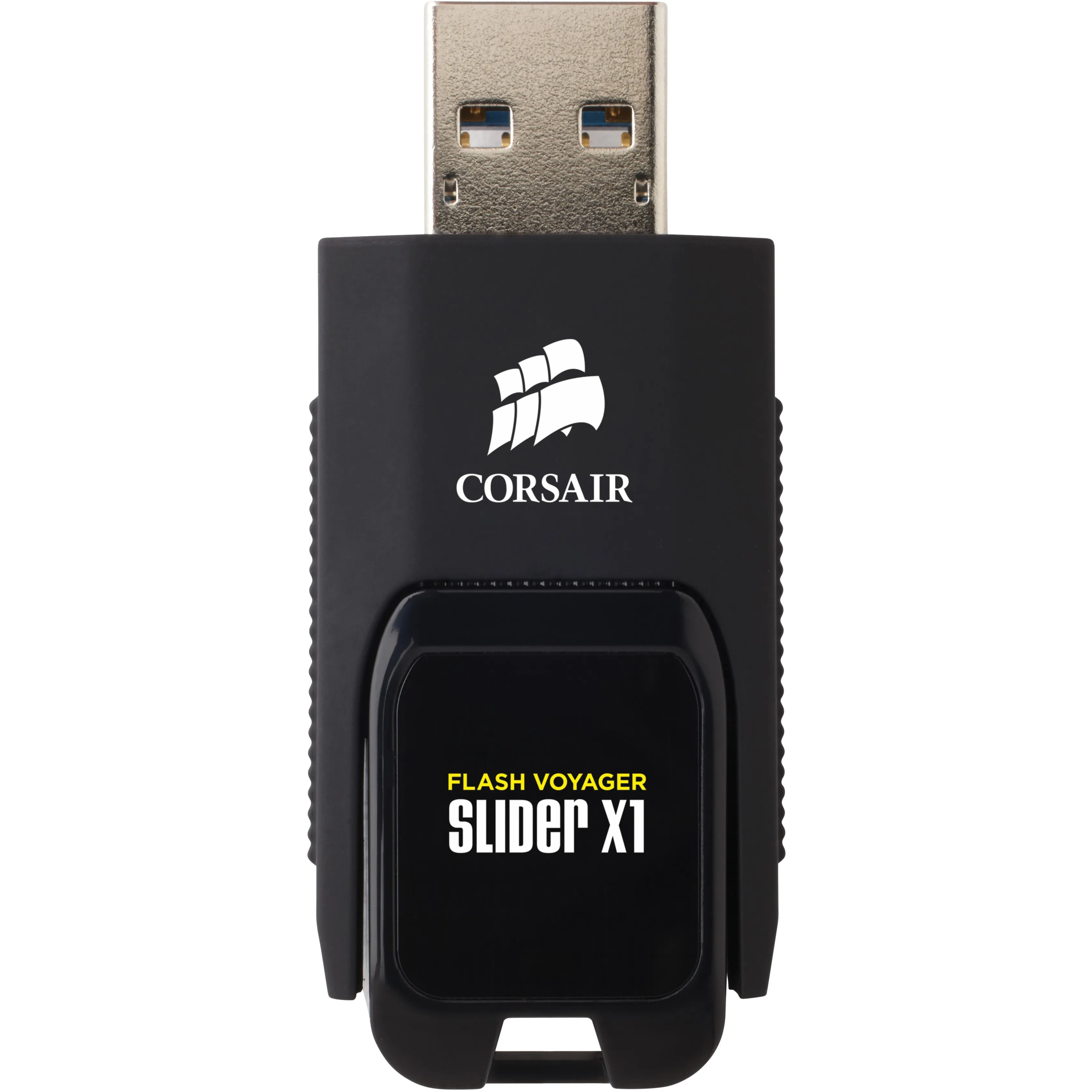 Corsair Flash Voyager Slider X1 128GB USB 3.0 Flash Drive, capless design, compatible with Windows and Mac Formats, Plug and Play. USB 2.0 compatibility. Flash Voyager Slider X1 is a compact USB 3.0 drive with bold styling and performance to match its looks. It has a smart design, with a USB connector that retracts for protection when you're not using it. A blue activity LED tells you at a glance if it's transferring data.
