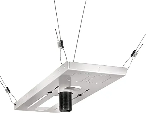 The Lightweight Suspended Ceiling Plate for Projector Mounts consists of an 8"(203mm) x 24"(610mm) filler tray and a 15.75"(400mm) x 24"(610mm) ceiling tray suspended by four tie wires from the true ceiling above