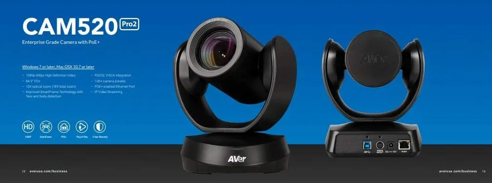 The CAM520 Pro2 conference camera is designed for professional video conferencing, delivering high-quality 1080p video and crystal-clear audio. It features a wide viewing angle to capture all participants in the room, making it an ideal choice for meetings, webinars, and collaborative workspaces.