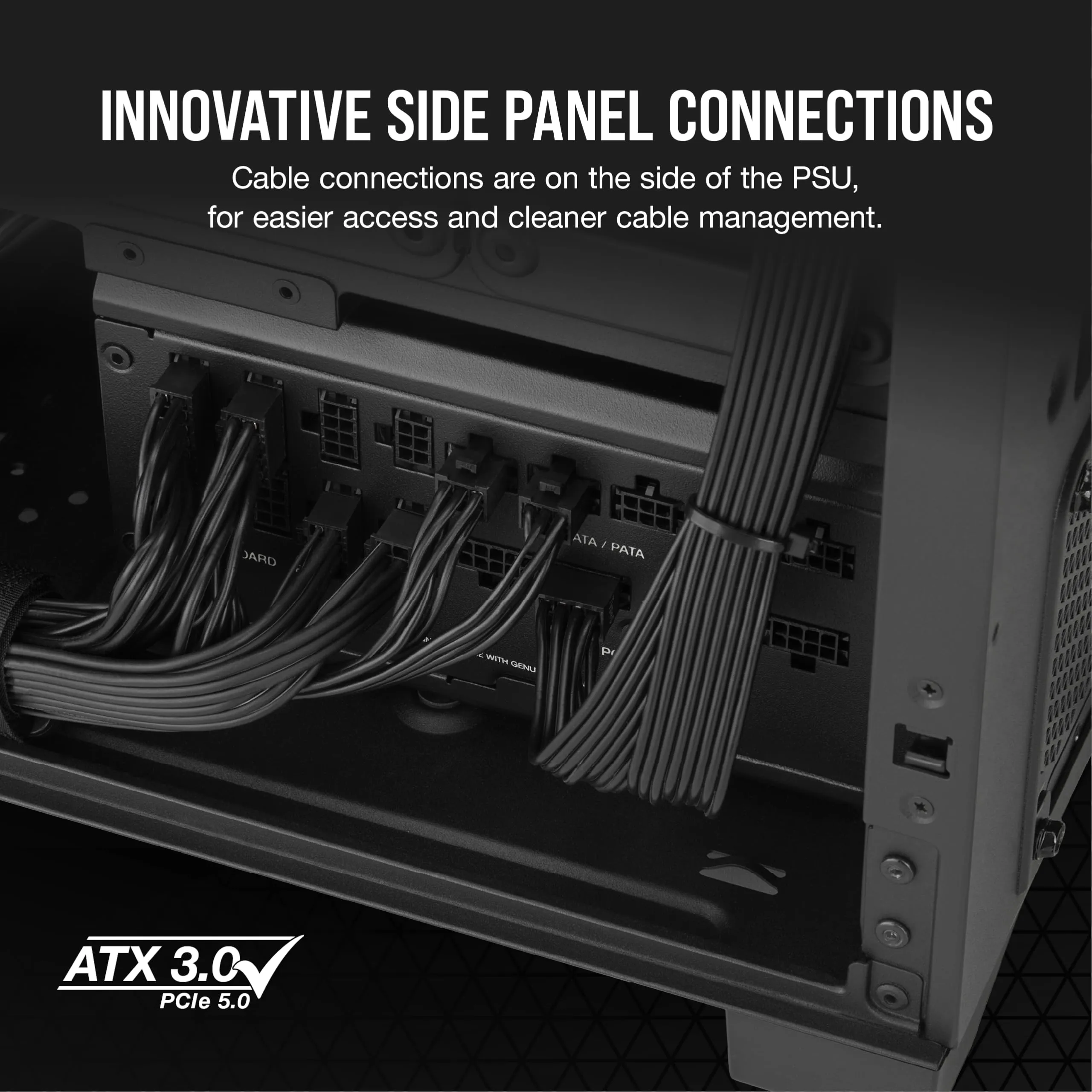 CORSAIR RMx SHIFT Series fully modular power supplies boast a revolutionary side cable interface to keep all your connections within quick reach, for exceptionally convenient 80 PLUS Gold efficient power. With fully modular micro-fit connections and ATX 3.0 compliance, RMx SHIFT makes clean PC builds and upgrades even easier.