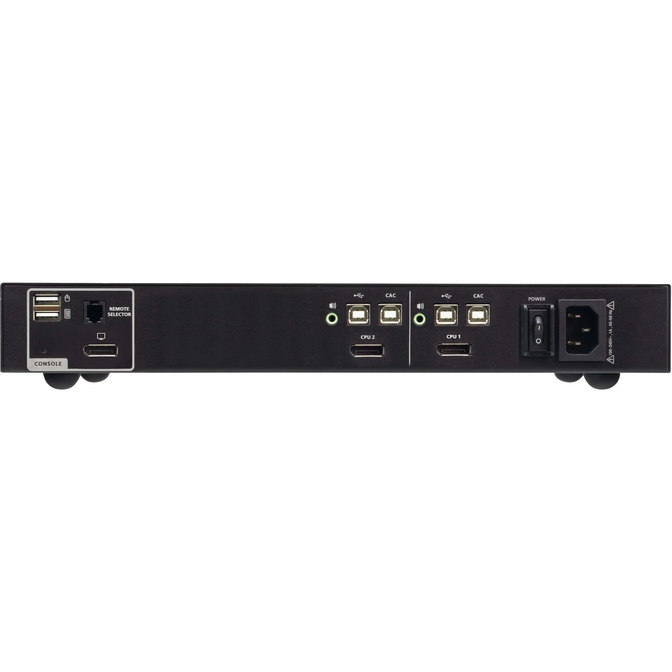 The 2-Port USB DisplayPort Secure KVM with CAC Support is designed for secure and efficient management of multiple systems while maintaining high levels of security. This KVM switch allows users to control two computers from a single keyboard, video monitor, and mouse setup, making it ideal for environments where security and efficiency are paramount.
