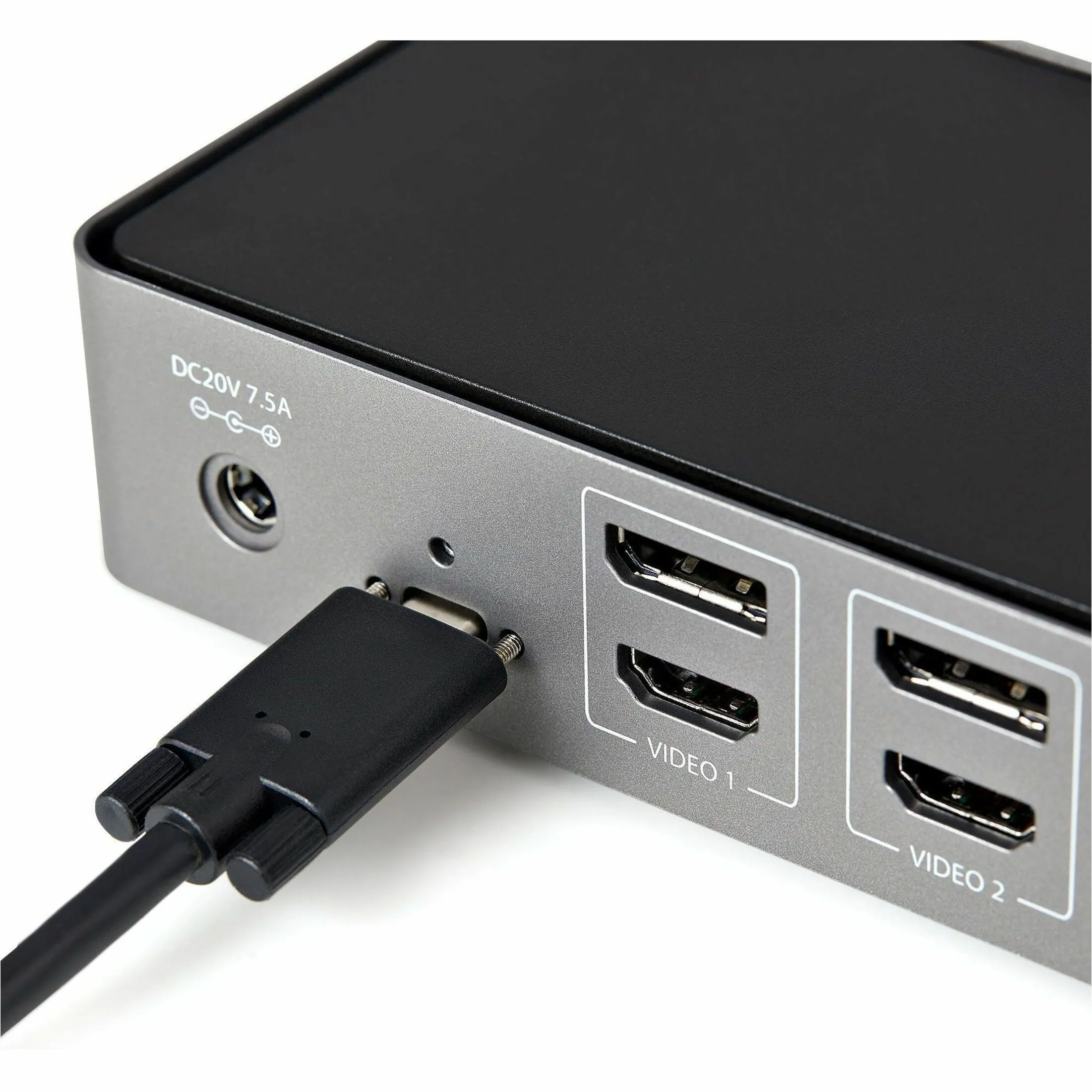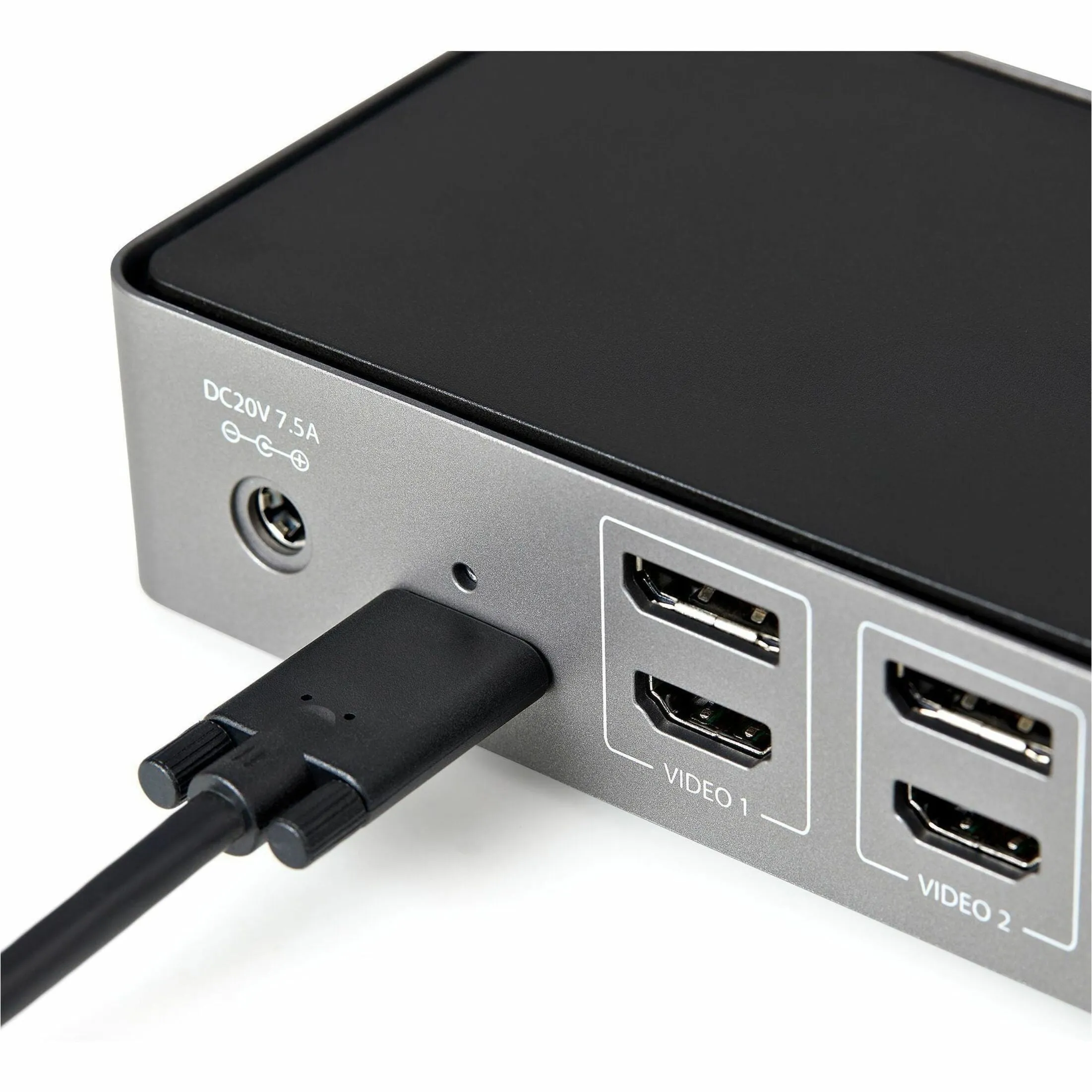 The StarTech USB-C Triple Monitor Docking Station is a versatile hybrid solution designed for laptops, allowing you to connect up to three displays with ease. Featuring DisplayPort and HDMI outputs, it supports stunning 4K resolution at 60Hz. With 85W Power Delivery and a comprehensive 6-port USB hub, this dock ensures high-speed connectivity and efficient device charging all in one compact unit.