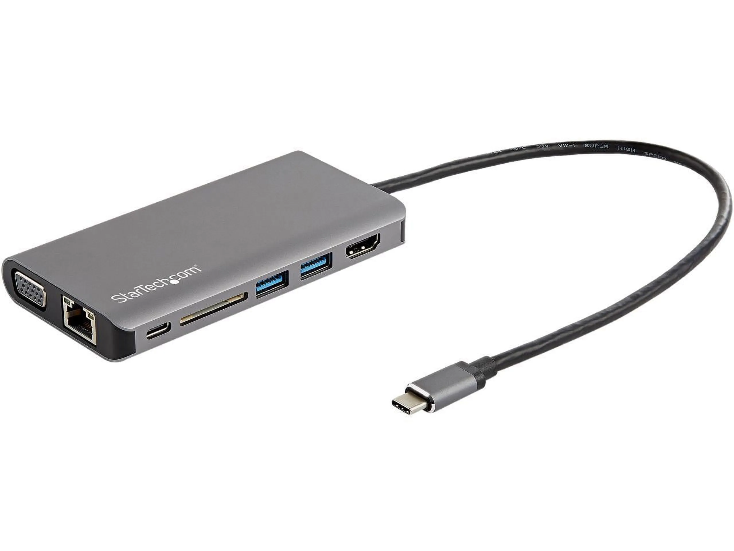 This USB-C multiport adapter turns your MacBook Pro, USB-C™ laptop, Chromebook, or Android (Samsung Galaxy S8, Note 9 and above) device into a workstation, anywhere you go. A USB Type-C adapter, ideal for travel, features everything from the essential HDMI or VGA video outputs and USB ports to an SD card reader and 100W PD including PD passthrough. All through a single extended length 30 cm, Thunderbolt 3 or USB-C attached host cable, providing more flexibility for harder to reach laptop and tablet connections.