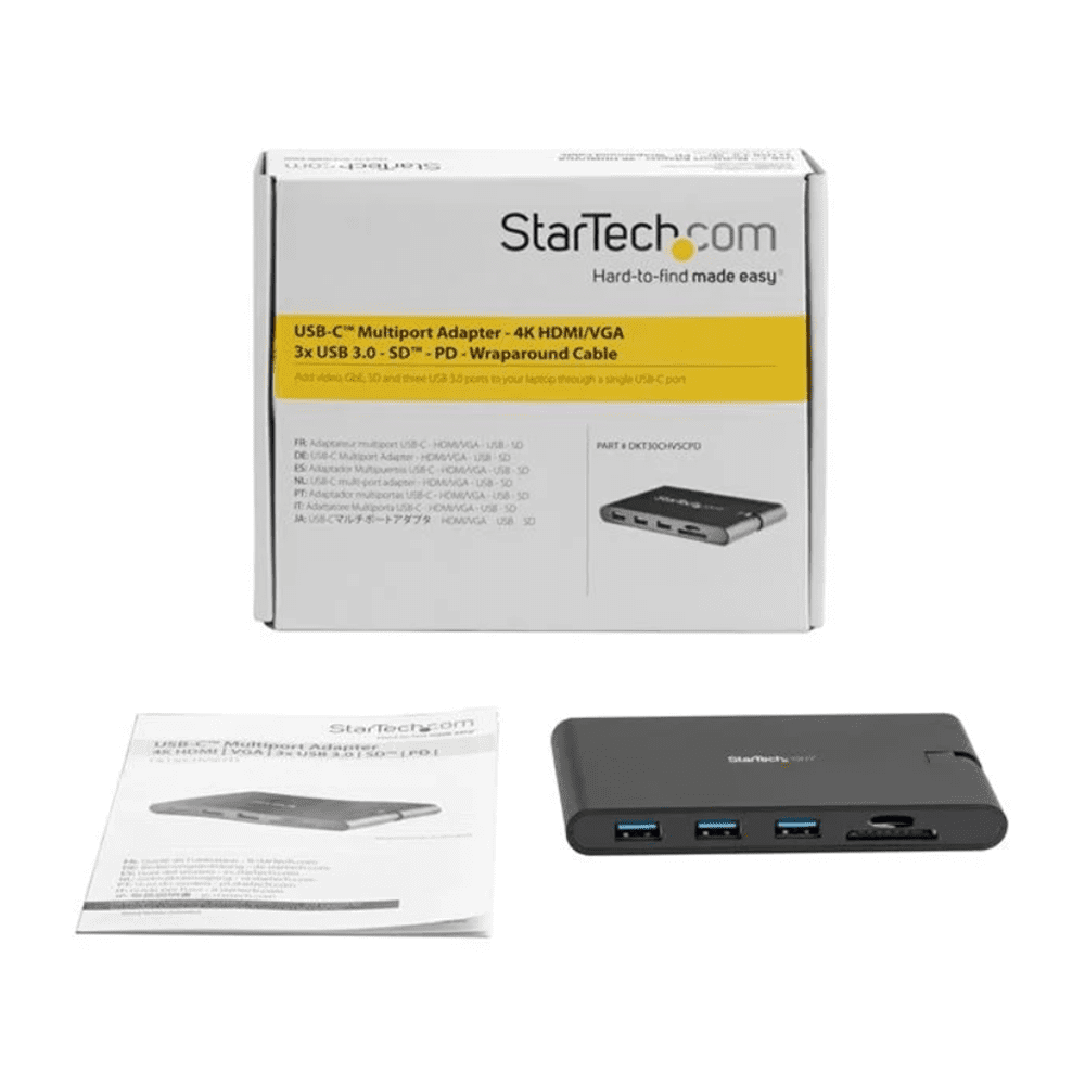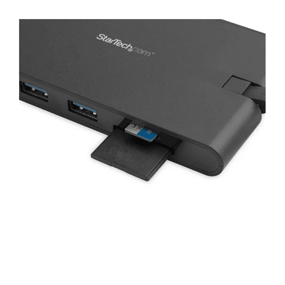 The StarTech Mini Travel Dock is the perfect accessory for on-the-go professionals. This versatile adapter offers a range of connectivity options, including SD and microSD card slots, Gigabit Ethernet, and an audio jack. With its compact design, it provides essential ports without compromising on portability, making it ideal for travel.