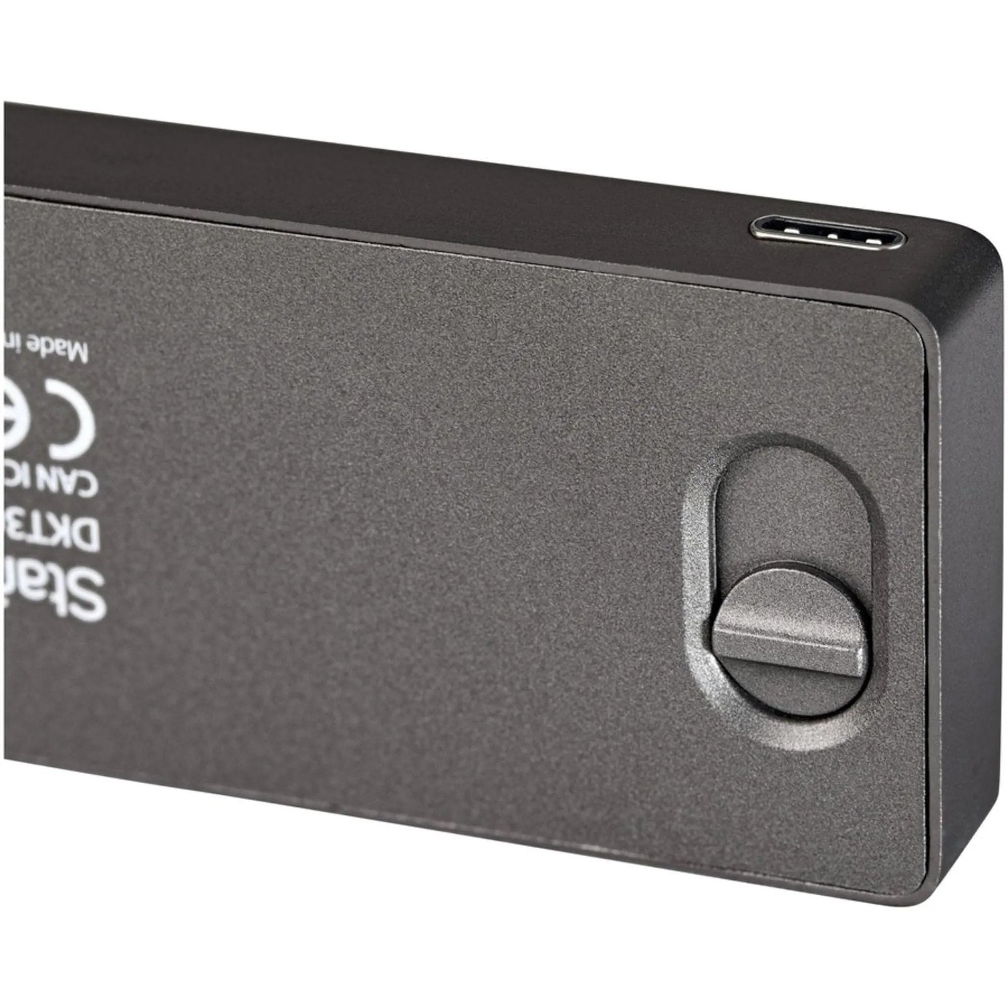 The adapter can be powered through USB bus or a USB Type-C laptop power adapter, featuring up to 100W Power Delivery 3.0 pass-through (8W for the docking station and up to 92W for charging), ensuring your devices stay charged while in use.