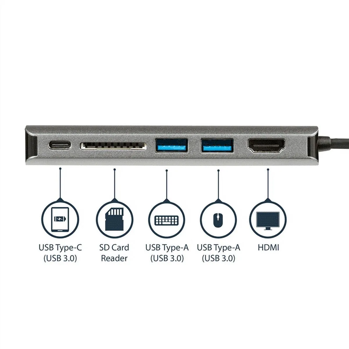 This USB-C multiport adapter with HDMI® turns your MacBook Pro, Dell XPS, or other USB-C™ laptop into a workstation, anywhere you go. The USB Type-C multiport adapter provides 4K HDMI video output, a USB Type-C™ port (data/power), two USB 3.0 Type-A ports, a Gigabit Ethernet port and an SD card reader slot, all through one connection to your laptop's USB-C or Thunderbolt 3™ port. Plus, it offers advanced charging through USB Power Delivery 3.0.