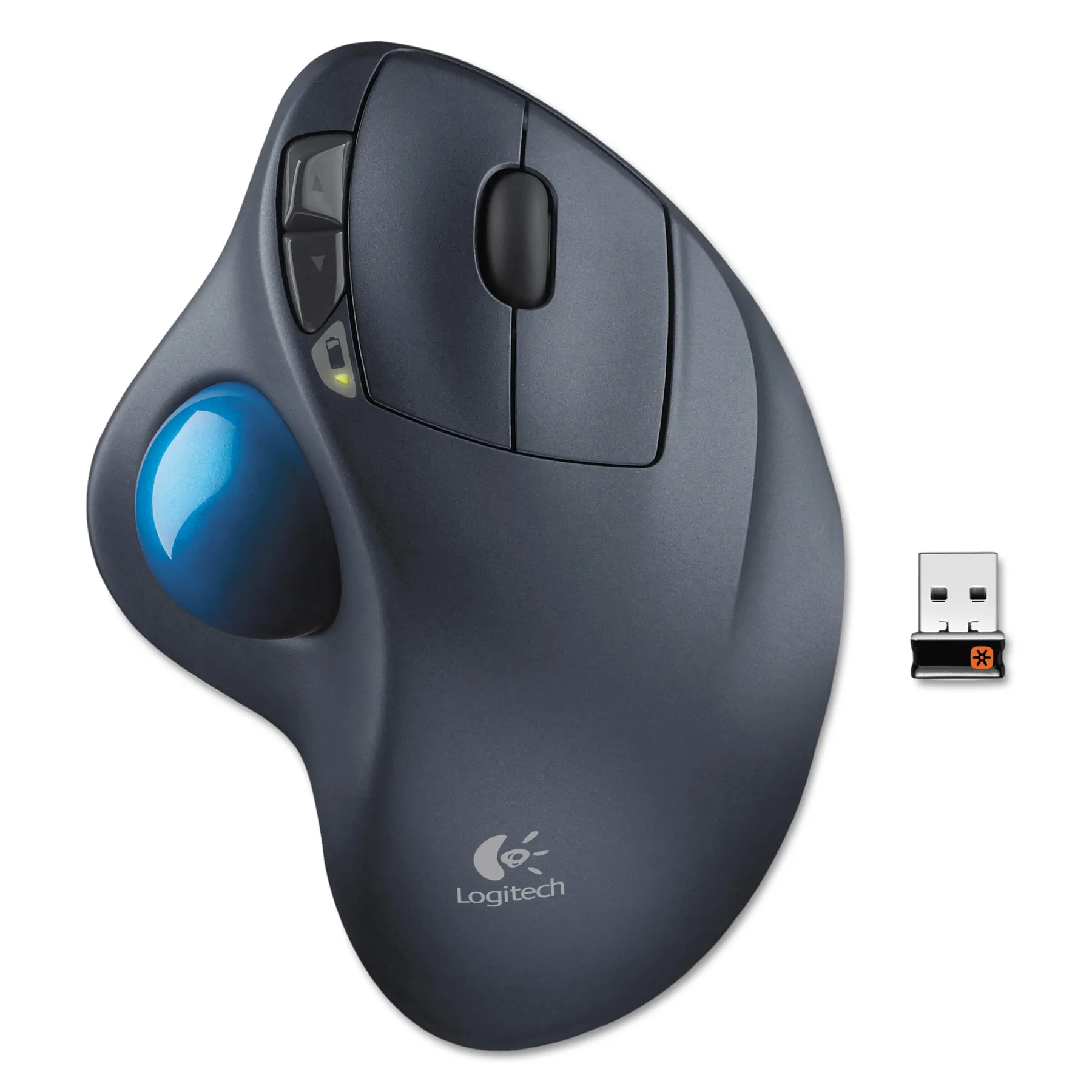 Wireless Trackball M570 stays in one place so you don't have to move your arm to move your cursor. The sculpted shape supports your hand and lets you rest your arm. Scroll wheel moves up and down through Web pages and long documents. Design also features programmable buttons, back/forward buttons, and an adjustable laser sensor for a wide range of cursor speeds. Advanced 2.4 GHz wireless delivers reliable performance, effectively eliminating delays and dropouts (compared to conventional 2.4 GHz and 27 MHz wireless technologies). Trackball is automatically paired with the receiver plugged into your computer and minimizes conflicts with other devices. Control devices up to 30' away. The included Logitech Unifying receiver is a tiny, wireless receiver that stays in your laptop and lets you add up to six compatible devices. Battery life lasts 18 months. Trackball includes the required single AA battery and is compatible with a USB port, Windows XP, Vista, 7, Mac OS X 10.5 or later.