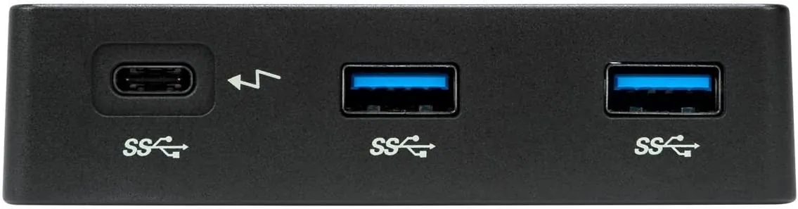 Make your mobile life easier with the USB-C Travel Dock with Power Pass-Through. Expand your laptop into a workstation by plugging in peripherals into the two USB-A ports, or easily connect to conference room displays when you set up for the big presentation. You can connect to a laptop or monitor, wireless keyboard, or mouse into the dock. It also passes power from your power adapter to the host computer (which is great if your laptop has only one USB-C port!). It has pro cable management, too — just place the cable into its designated slot and forgo it getting tangled or creating a mess in your bag.