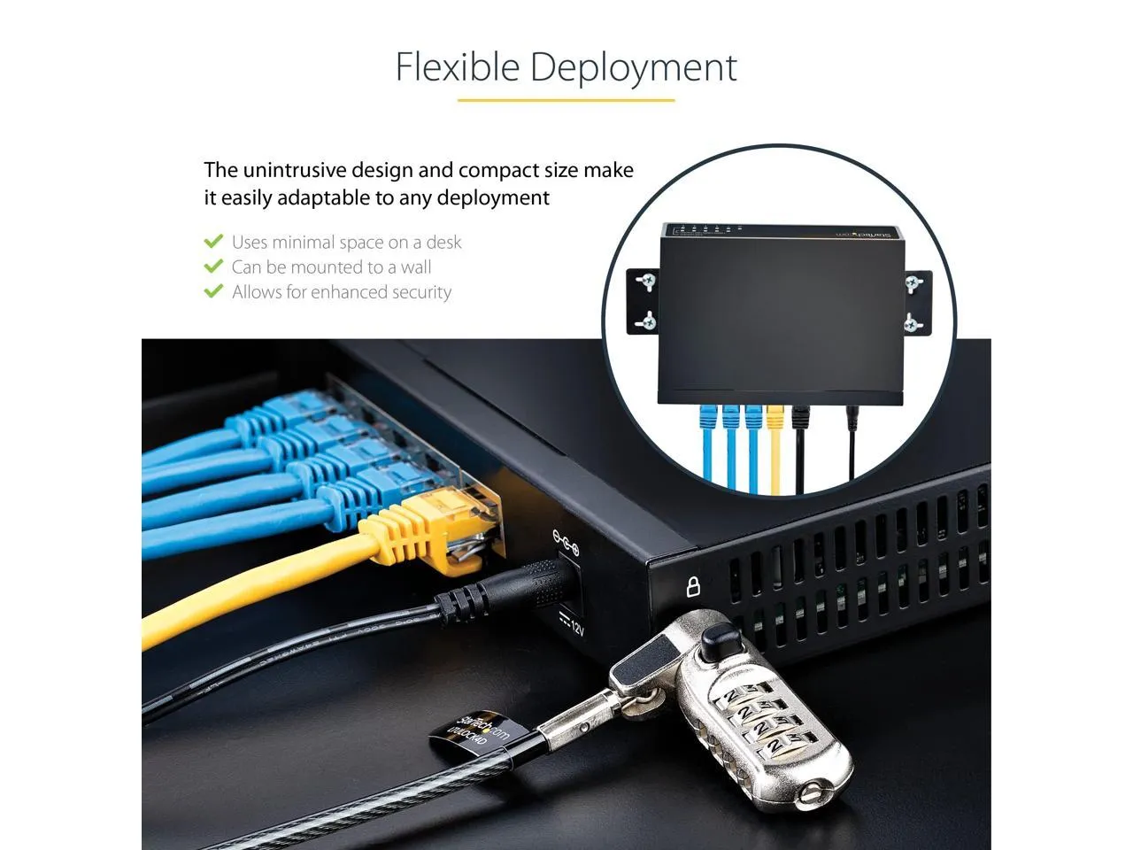 Housed in a compact all-metal case, this switch is built for durability and includes a wall mount kit for versatile placement. With enhanced security features, including a k-slot, your network is protected.