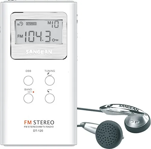 Sangean DT-120 WHITE Pocket AM/FM Digital Radio (White), 15 Presets-5 AM/10 FM; Auto Search; Indicator; PLL-synthesized Digital Tuning With 15 Presets; Auto Tuning System (ATS), Auto-search Function & Stereo/mono Switch; Stereo Headphone Output; 90-min Auto Shutoff; Deep Bass Boost; Button Lock Switch; Includes Earbuds; Requires 2 AAA, White; This pocket am/fm digital radio (white) is a high quality radios item from our portable & personal electronics , personal a/v components , clocks & radios , radios collections at a reduced price under $50, an incredible deal you can't miss. It always ships fast and accurately and comes with a 100% guarantee. Buy your cables, accessories and all your electronics from our extensive electronics collection in confidence and save over other retailers. This sangeanĀ® pocket am/fm digital radio (white) is a great radios,portable,personal,electronics,personal,a/v,components,clocks,radios,radios item at a reduced price under $50 you can't miss. This item is brand new, unopened and sealed in its original factory box. Its dimensions are 10.75 x 7.30 x 1.90 inches and it weighs 1.61 lbs. This sangeanĀ® pocket am/fm digital radio (white) is a radios item from our portable & personal electronics , personal a/v components , clocks & radios , radios collections which comes with a full satisfaction guarantee.