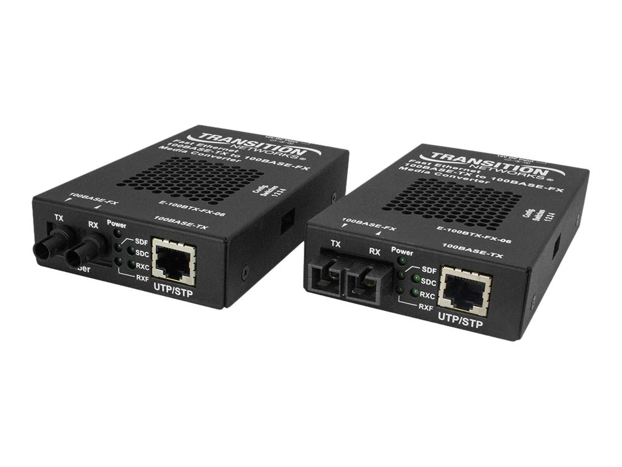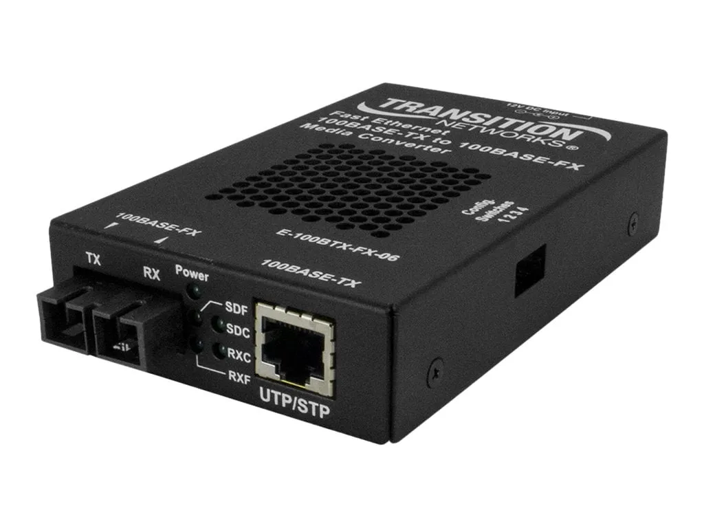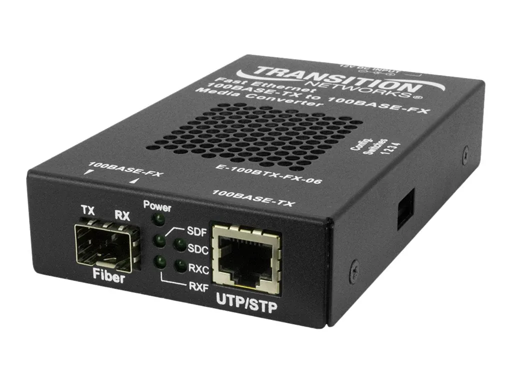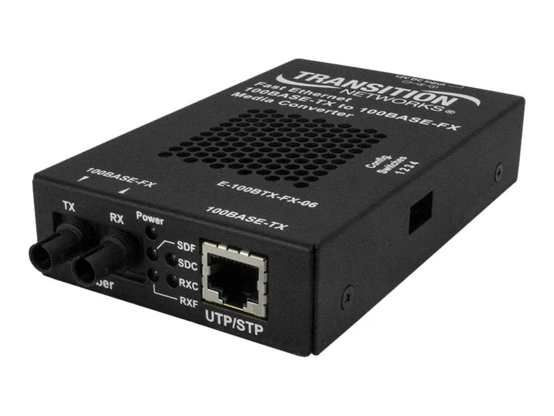 The Transition Networks 100BASE-TX to 100BASE-FX media converter allows seamless connectivity between copper and fiber optic networks. This converter supports a 100 Mbps data rate over both copper and fiber, ensuring reliable data transmission over various distances.