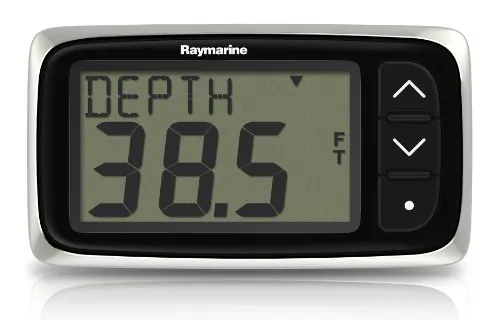 i40 Depth Instrument Raymarines i40 Depth Instrument is available as a complete system with a thru-hull transducer, transom mount or as a display-only kit enabling you to monitor your boats depth at a remote location. The i40 Depth Instrument offers easy-to-read displays of current depth, and minimum depth recorded. The unit also offers a convenient shallow depth alarm, deep depth alarm, shallow anchor alarm, and deep anchor alarm. The i40 Depth Instrument offers convenient depth offset controls allowing you to calibrate the readout to compensate for projections (rudders, props, skegs etc.) or to display the depth from the waterline of the vessel.