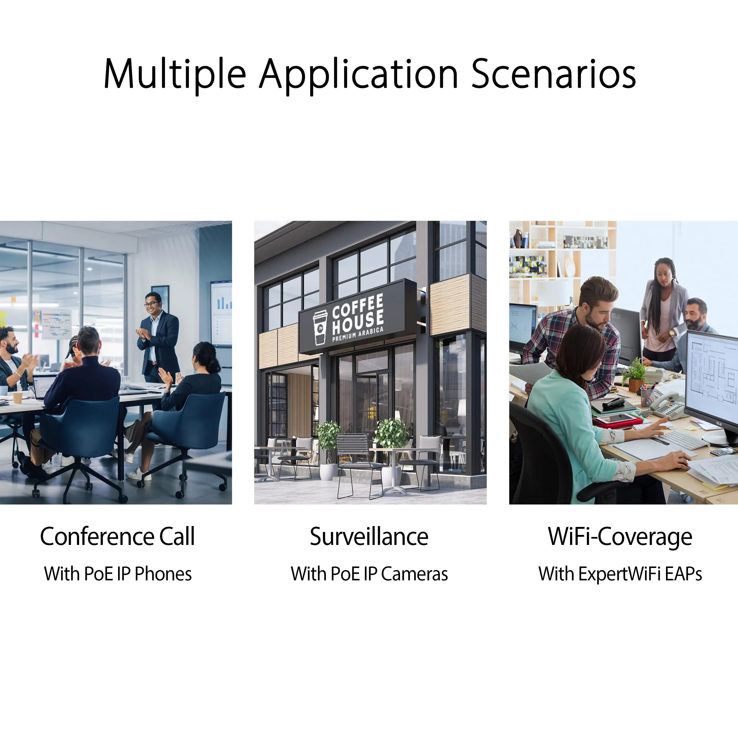 • 8 PoE+ ports for efficient device connectivity