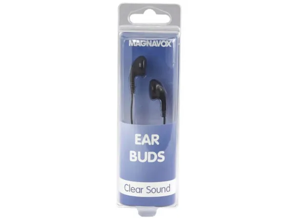 Experience an immersive audio journey with MAGNAVOX durable black wired earbuds. These stylish earbuds are designed for both resilience and comfort, making them perfect for any activity.