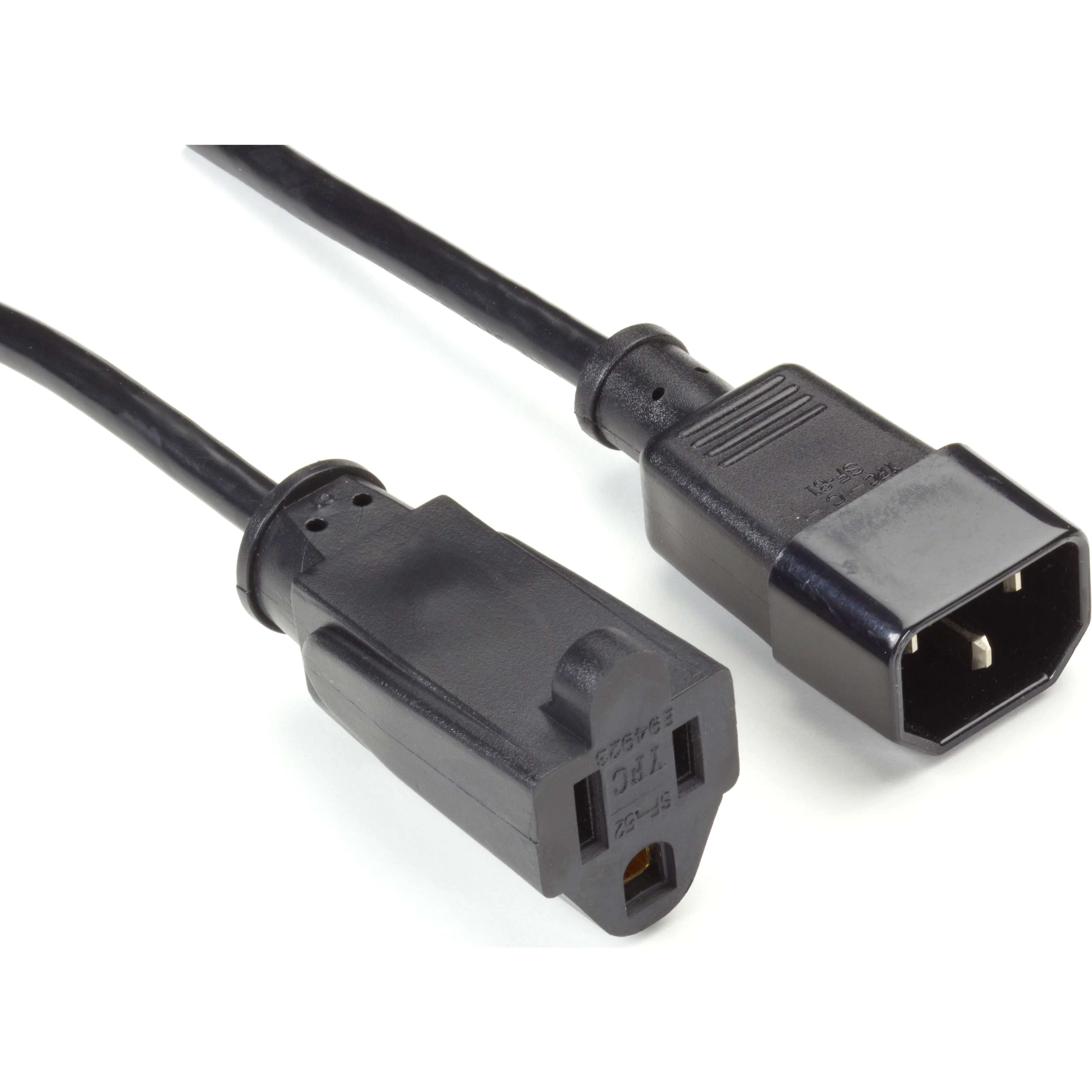 This 1-foot power cord features a NEMA 5-15R plug on one end and an IEC-60320-C14 connector on the other end. Ideal for connecting devices that require a C14 power input to standard wall outlets.