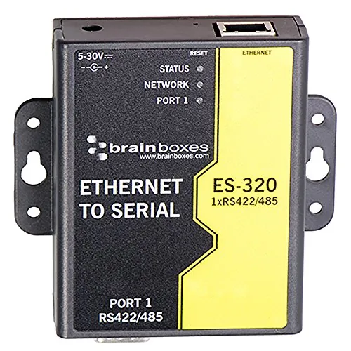 Brainboxes 1 Port RS422/485 Ethernet to Serial Adapter ES-320 - 1 x Network (RJ-45) - 1 x Serial Port - Fast Ethernet - Rail-mountable ETHERNET DEVICE SERVER