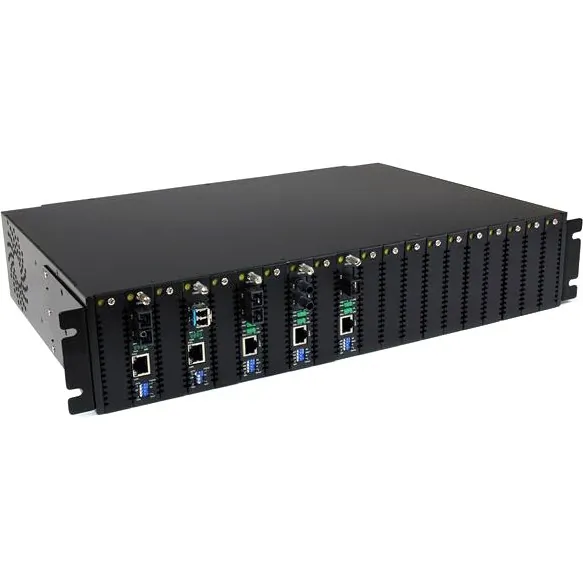 For added versatility, this fiber media converter supports standalone operation, or installation into the 20 Slot, 2U Rackmount Chassis (ETCHS2U).