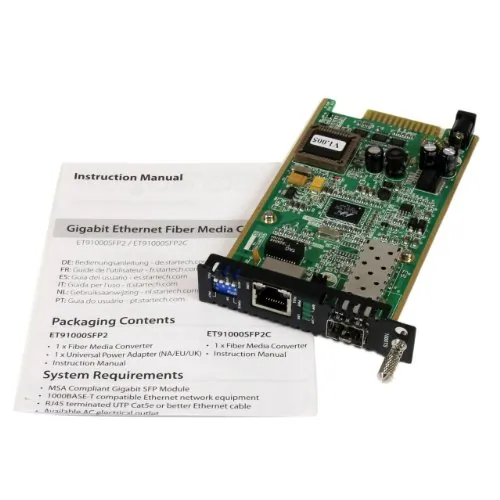 StarTech.com Gigabit Ethernet Fiber Media Converter Card Module w/ Open SFP Slot - Fiber to Ethernet Converter - Ethernet Media Converter (ET91000SFP2C) - Fiber media converter - GigE - 1000Base-TX - RJ-45 / SFP (mini-GBIC) - for P/N: ET10GSFP, GLCSXMMRGDST, J4858C10PKST, J4858CST