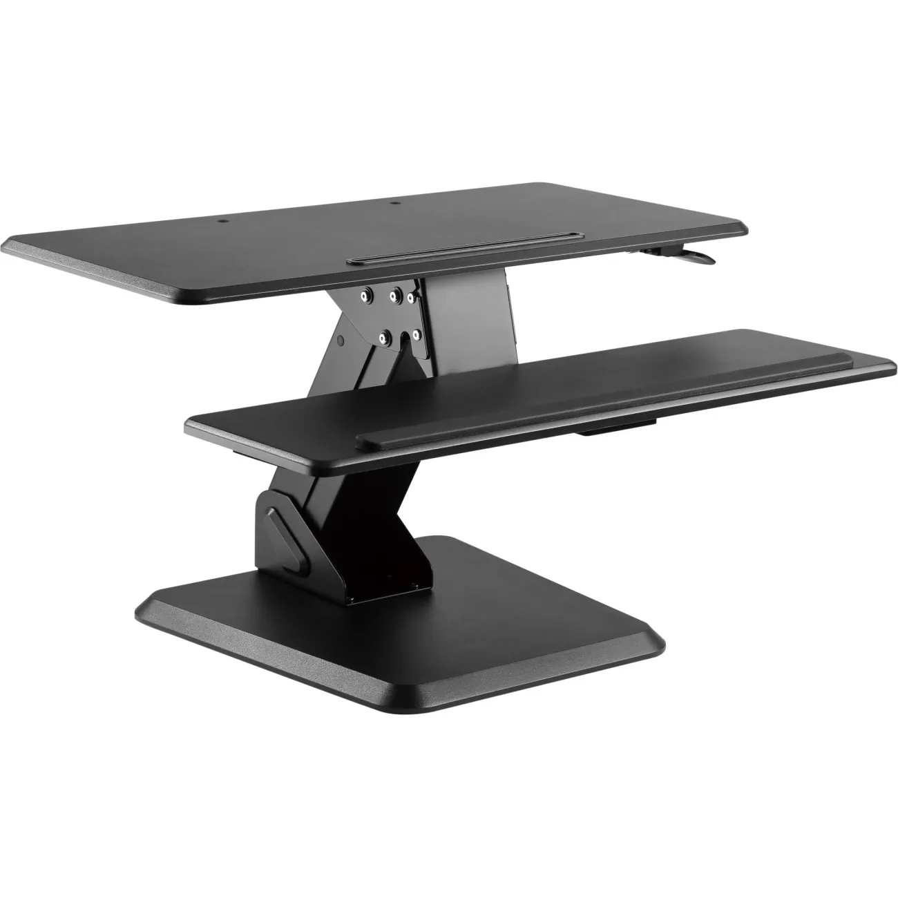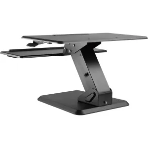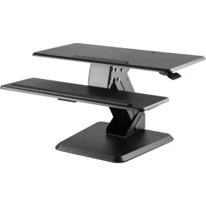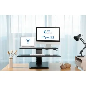 General InformationGas Spring Sit-Stand Desktop Workstation - Black FinishThe sturdiness and intuitiveness of a sit-stand has become one of the biggestindicator of quality in this market. However, the EZPED32 demonstrates a high caliberin both aesthetics and stability. We incorporated high quality material of which canwithstand a great amount of weight. We ensure not only a solid base but one thatdoes not take up too much space in order to maximize desk space and productivity.The workstation will remain stable even during typing along with the keyboard tray rest that is engineered to ensure optimal ergonomics for long usage. In order for the user to transition easily, the height can be adjusted with the built in squeeze lever. Built-In gas spring allows you to stand up with little effort. Built-in spring gauge for perfect weight adjustment Large solid base to ensure stability at any height Large surface for placing more devices (tablets, laptop, desktop) Cable management system for added organization Technical InformationMaximum Adjustable Stand Height: 19.90"Maximum Load Capacity: 37.48 lbFeatures: Gas SpringFeatures: Adjustable HeightFeatures: ErgonomicFeatures: SturdyFeatures: Keyboard TrayFeatures: Weight ManagementFeatures: Cable ManagementPhysical CharacteristicsColor: BlackMaterial: SteelMaterial: PlasticMaterial: Medium Density Fiberboard (MDF)Material: Polyvinyl Chloride (PVC)Form Factor: DesktopHeight: 19.9"Width: 31.5"Depth: 31.7"MiscellaneousPackage Contents: Gas Spring Sit Stand Desktop Workstation Ziplock Polybag WarrantyLimited Warranty: 1 Year
