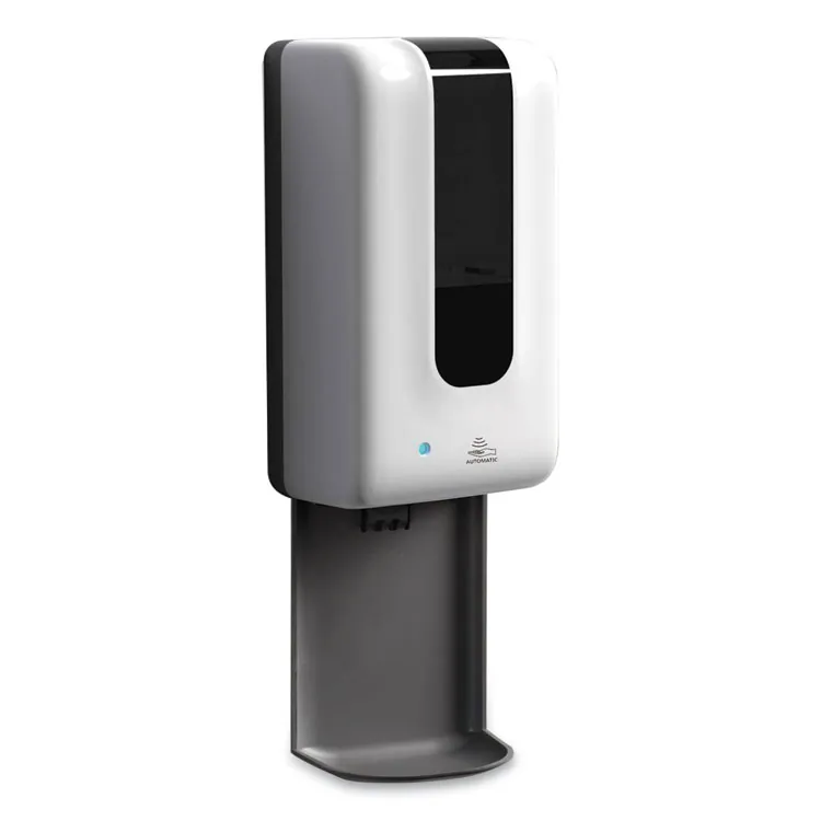 This automatic hand sanitizer dispenser is equipped with a tray and features a generous capacity of 1,200 ml. Its sleek design measures 5.9 x 3.8 x 17.9 inches, making it an ideal addition to any space for promoting hygiene.