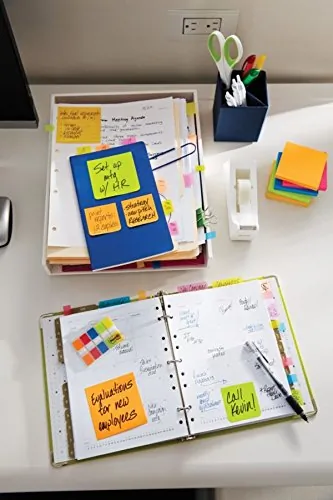 Post-it Super Sticky Full Adhesive Notes provide versatility and reliability for new uses in new places. Notes hold longer and stronger yet remove cleanly. Use inside planners, ring binders, calendars and journals so you always have notes handy. Full adhesion across the entire back of each note makes sure the whole pad stays together when it is stuck to a surface. Nonstick edge has rounded corners for fast, easy removal from pad. Individual notes are ideal to leave a note on almost any vertical surface. Each pad contains 30 sheets. Assorted bright colors include electric yellow, neon pink, electric blue and limeade.