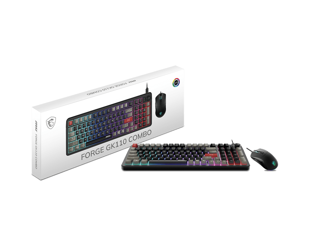 The MSI FORGE GK110 Gaming Keyboard and Mouse Combo is designed for gamers who value performance and aesthetics. Experience quiet, responsive typing that enhances productivity and gaming. The keyboard features a dedicated audio scroll wheel for on-the-fly adjustments, making it easier to control your sound during intense sessions.