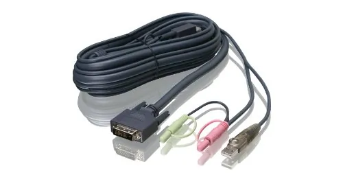 The IOGear 10ft Dual Link DVI KVM Cable allows for seamless switching between multiple computers while sharing a single monitor, keyboard, and mouse. Designed for high-resolution displays, it supports dual link DVI video output along with USB and audio/mic connections. Ideal for use in a professional setting, this cable ensures clean and efficient connectivity.