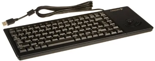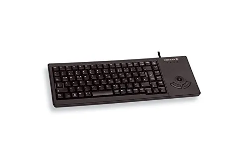 This 15-inch mini slim keyboard features a built-in trackball for seamless navigation. Perfect for compact spaces, it offers a comfortable typing experience with its low-profile keys.