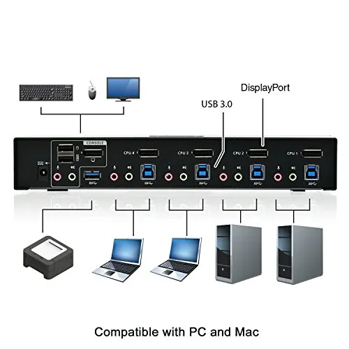 4PORT DP1.2 KVMP WITH USB3.1 HUB AND AUDIO