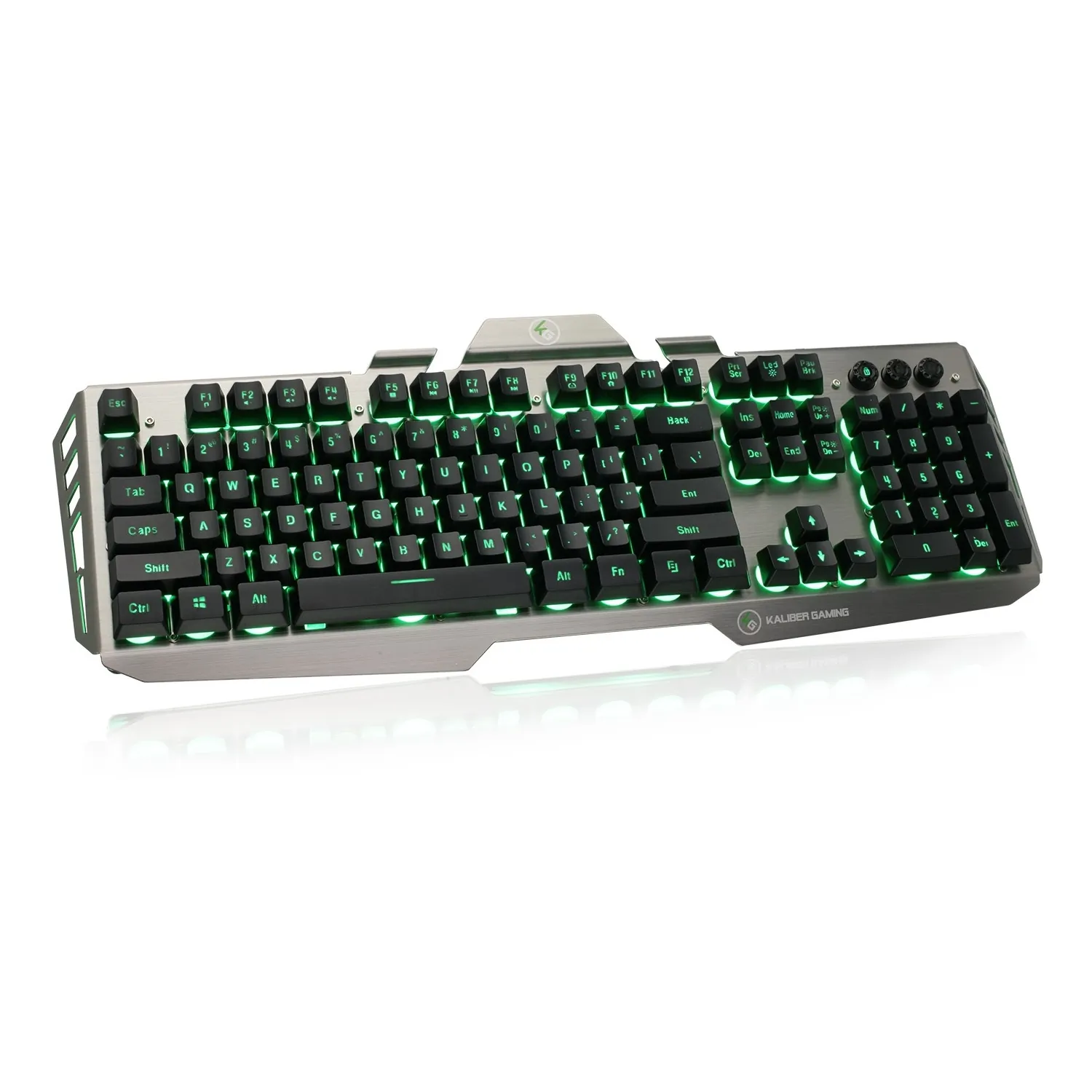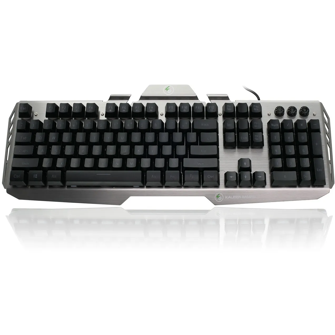 Kaliber Gaming designed the HVER Gaming Keyboard to deliver the most requested gaming features wrapped inside a great-looking design, and at a price that won't break your budget. HVER's internal key design provides a solid stroke with that positive "break point" feeling when engaged-similar to that of a mechanical keyboard. The HVER features double injected keycaps-a much more durable and expensive design that delivers a lifetime of performance without the key tops ever wearing off. Also built into HVER are 26 anti-ghosting keys, Windows key lockout, W-A-S-D/arrow key swap, plus 3-color LED backlighting all wrapped up in an aluminum upper chassis to deliver an exceptional gaming experience.