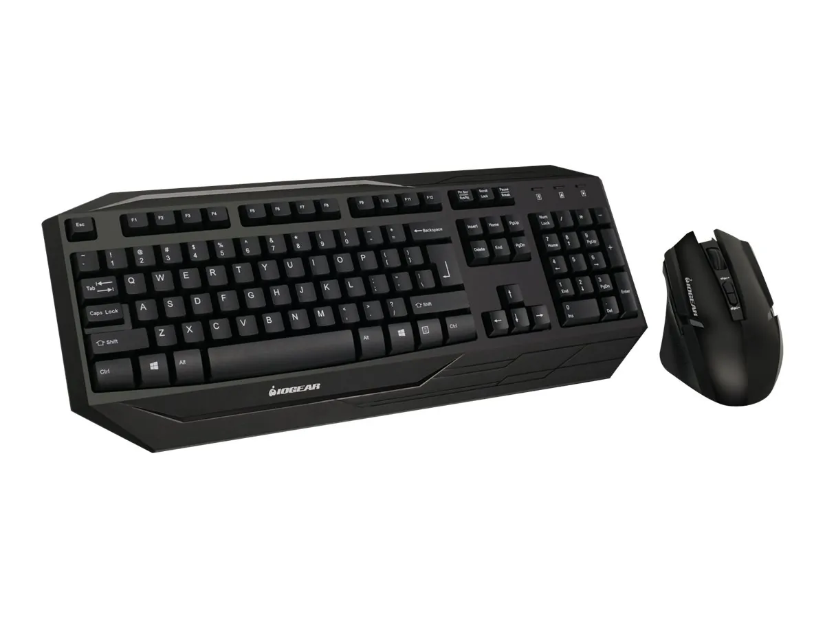 Iogear's Kaliber Gaming Wireless Gaming Keyboard and Mouse Combo offers both gamers and desktop users a great way to "cut the cord" while also providing key features for when it's time to get your game on. The 2.4GHz wireless connection allows working from a distance, so you can play games from the sofa or work in a conference room without being tethered to the computer. Its keys are rated for a stroke life of 20 million.
