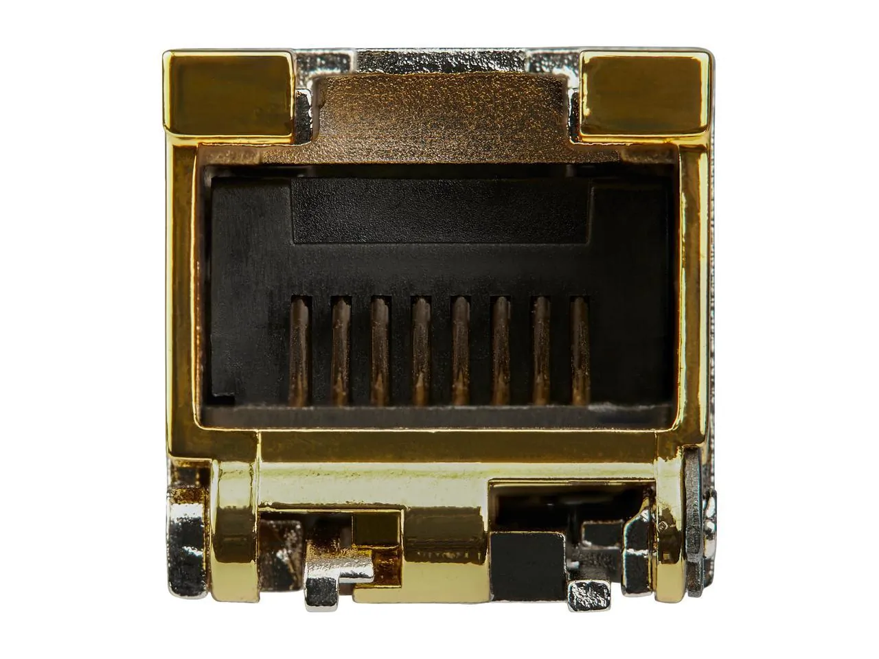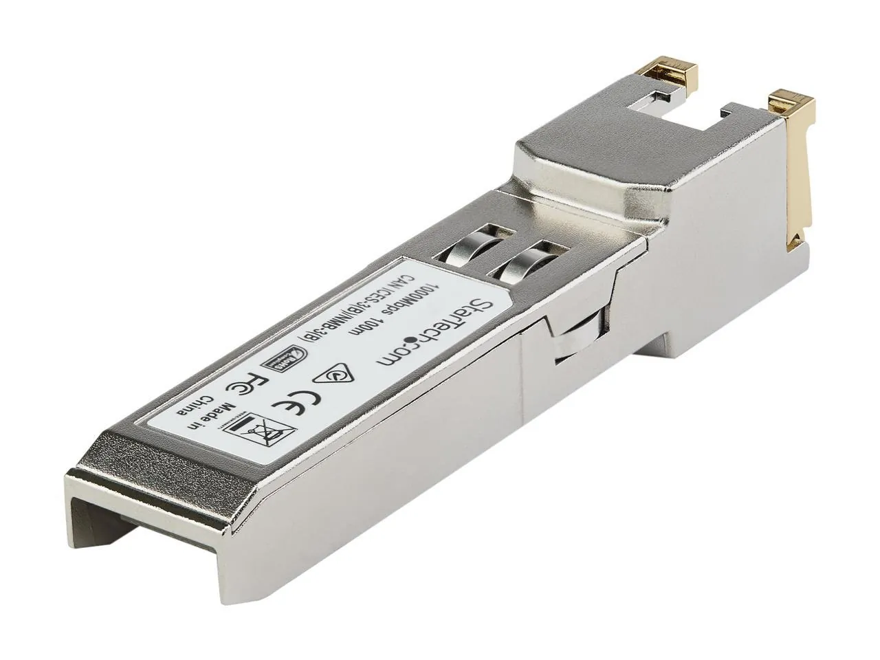 The GLCTEST is a Cisco GLC-TE compatible copper transceiver module that has been designed, programmed and tested to work with Cisco® brand switches and routers for extended temperatures. It delivers dependable 1 GbE connectivity over copper cable, for 1000BASE-T compliant networks, with a maximum distance of up to 100 m (328 ft). Technical Specifications: Maximum Data Transfer Rate: 1000 Mbps Type: Copper Connection Type: RJ45 Connector Maximum Transfer Distance: 100 m (328 ft) MTBF: 4,655,371 hours Power Consumption: Less than 1.3 Watts Digital Diagnostics Monitoring (DDM): No This SFP copper module is hot-swappable, making upgrades and replacements seamless by minimizing network disruptions. StarTech.com SFPs All StarTech.com SFP & SFP+ transceiver modules are backed by a lifetime warranty and free lifetime multilingual technical support. StarTech.com offers a wide variety of SFP modules and direct-attach SFP cables, providing the convenience and reliability you need to ensure dependable network performance. Manufacturer: StarTech.com. Manufacturer Part Number: GLCTEST. Brand Name: StarTech.com. Product Name: Cisco SFP (mini-GBIC) Module. Packaged Quantity: 1. Product Type: SFP (mini-GBIC). [Technical Information] Application/Usage: Data Networking. [Interfaces/Ports] Interfaces/Ports Details: 1 x RJ-45 1000Base-T Network LAN. [Media & Performance] Media Type Supported: Twisted Pair. Ethernet Technology: Gigabit Ethernet. Network Technology: 1000Base-T. [Physical Characteristics] Form Factor: Hot-swappable. [Miscellaneous] Compatibility: MSA Compliant. Environmentally Friendly: Yes. Environmental Certification: REACH. RoHS. WEEE. Country of Origin: China.