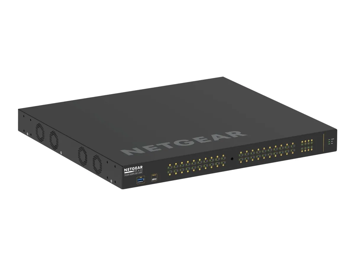 The Netgear M4250 40G8XF Managed PoE+ Switch provides exceptional performance and versatility for modern audio and video installations. With its robust design, this switch offers up to 48 ports that support a variety of Power over Ethernet (PoE), PoE+, and Ultra90 PoE++ options. It features both 1G and 10G uplink capabilities tailored for audio and standalone video setups, making it ideal for both small and large-scale deployments.