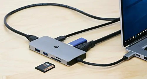 IOGEAR USB-C Travel Dock with Power Delivery 3.0 expands the connectivity of your laptop or tablet's USB-C port. Travel lighter with this portable, 8-in-1 dock and leave your bulky accessories at home. The Dock is equipped with a USB-C power charging pass-through port, three high-speed USB 3.0 expansion ports, a Gigabit Ethernet port, SD/MicroSD card reader/writer ports and a 4K HDMI port.