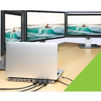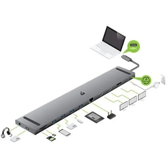 The USB-C Triple HD Dock with Power Delivery offers a versatile connectivity solution for your laptop or device. With the ability to connect up to three high-definition monitors, this dock enhances your productivity by expanding your workspace. Enjoy quick access to multiple USB ports for your peripherals, and charge your device simultaneously via the Power Delivery feature.